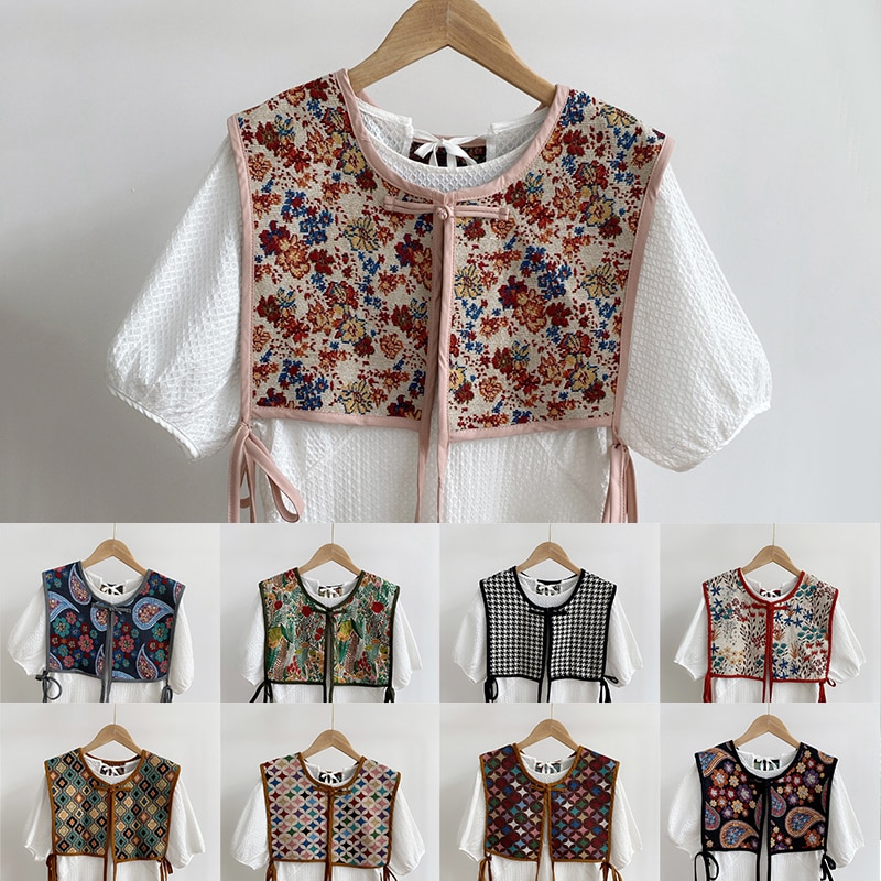Поддельный воротник аксессуары для одежды жилет куртка шаль рубашка ложный галстук шнуровка съемные воротники женские Цветочная вышивка Винтаж