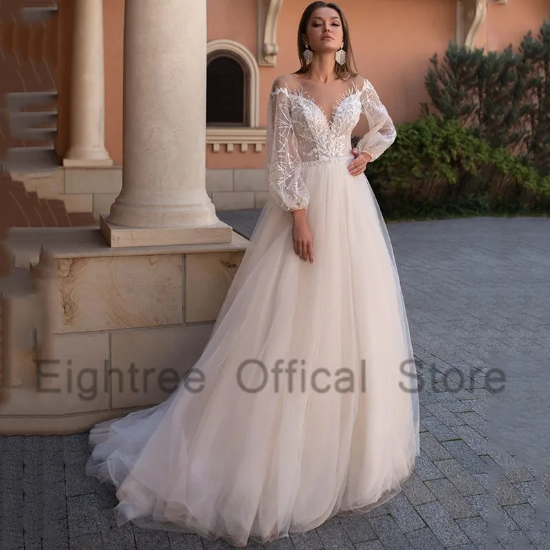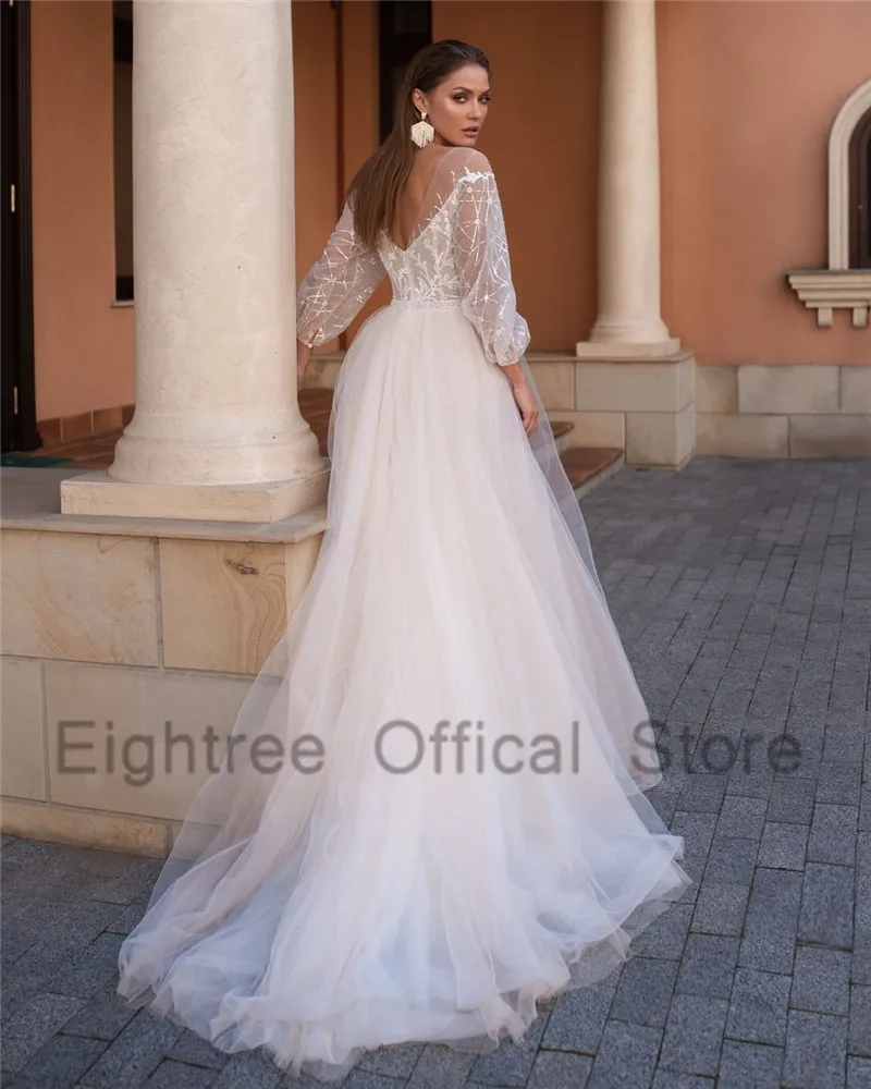 Винтажное свадебное платье с длинным рукавом и V-образным вырезом