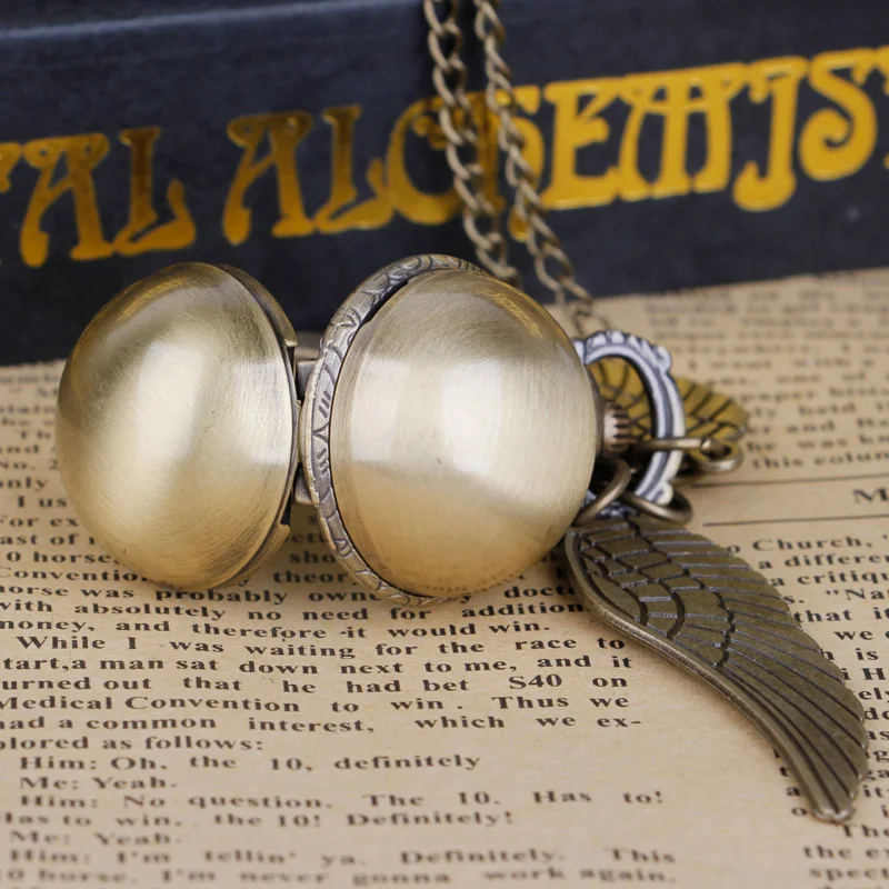 Винтажные кварцевые карманные часы в форме мяча Снитча, милый свитер, крылья ангела, ожерелье, цепочка, подарки для мужчин, женщин, детей