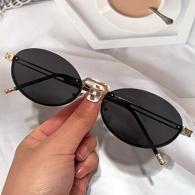 Винтажные маленькие овальные черные градиентные солнцезащитные очки для женщин, новые модные брендовые элегантные солнцезащитные очки Uv400, мужские круглые очки из сплава