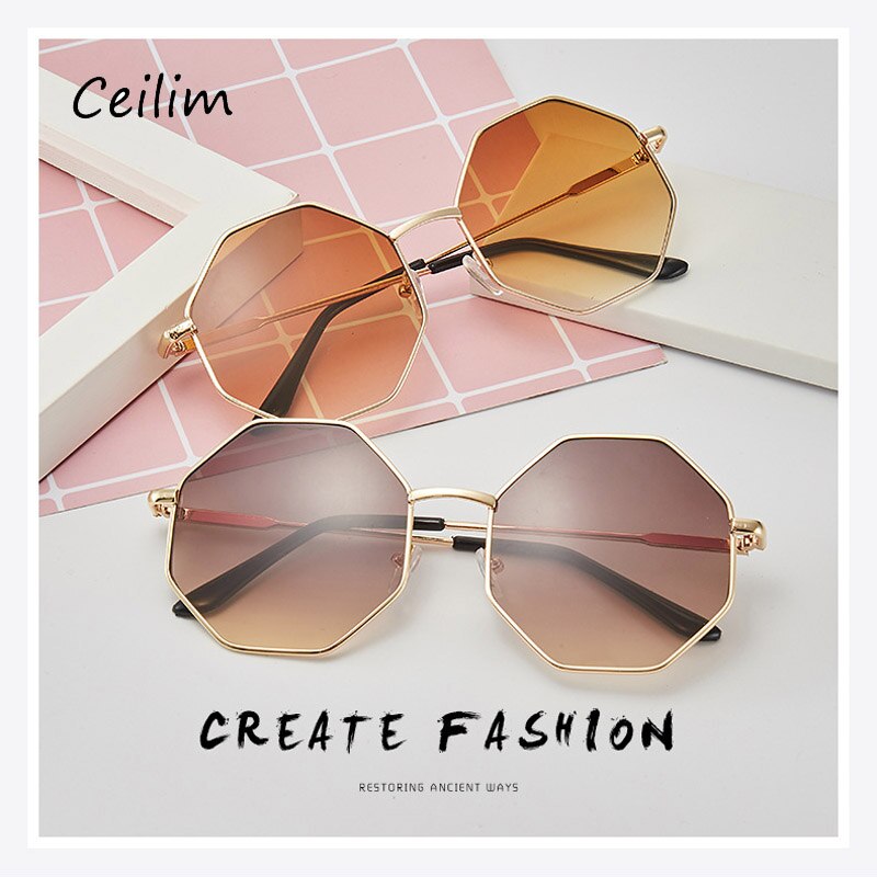 Винтажные металлические шестигранные солнцезащитные очки для женщин 2021 брендовые дизайнерские градиентные очки оверсайз
