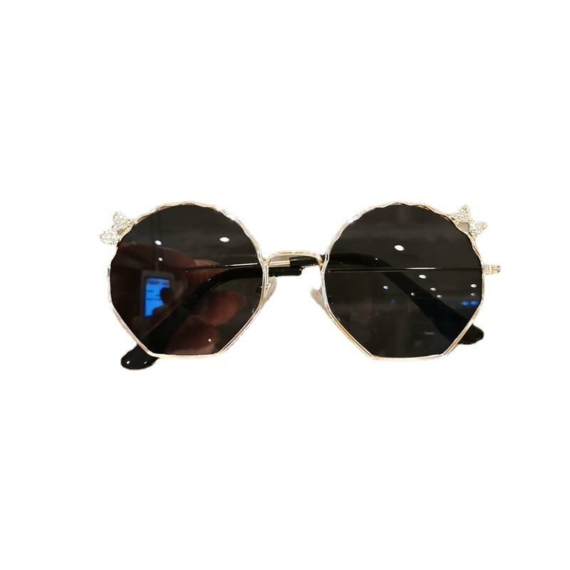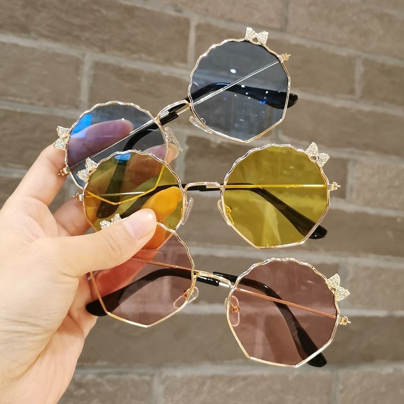 Винтажные Солнцезащитные очки с бантом для девочек, металлические детские солнцезащитные очки, милые круглые детские очки, модные очки для мальчиков