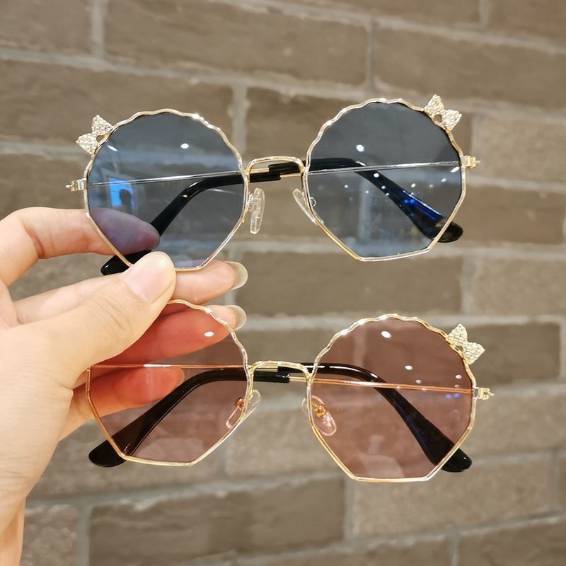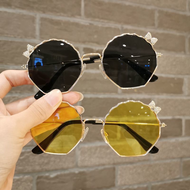 Винтажные Солнцезащитные очки с бантом для девочек, металлические детские солнцезащитные очки, милые круглые детские очки, очки для улицы, модные очки для мальчиков