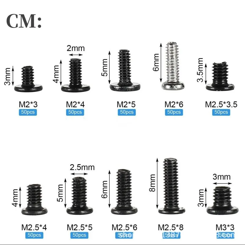 Каждый размер 50 шт., 10 видов винтов для ноутбука для широкого использования.