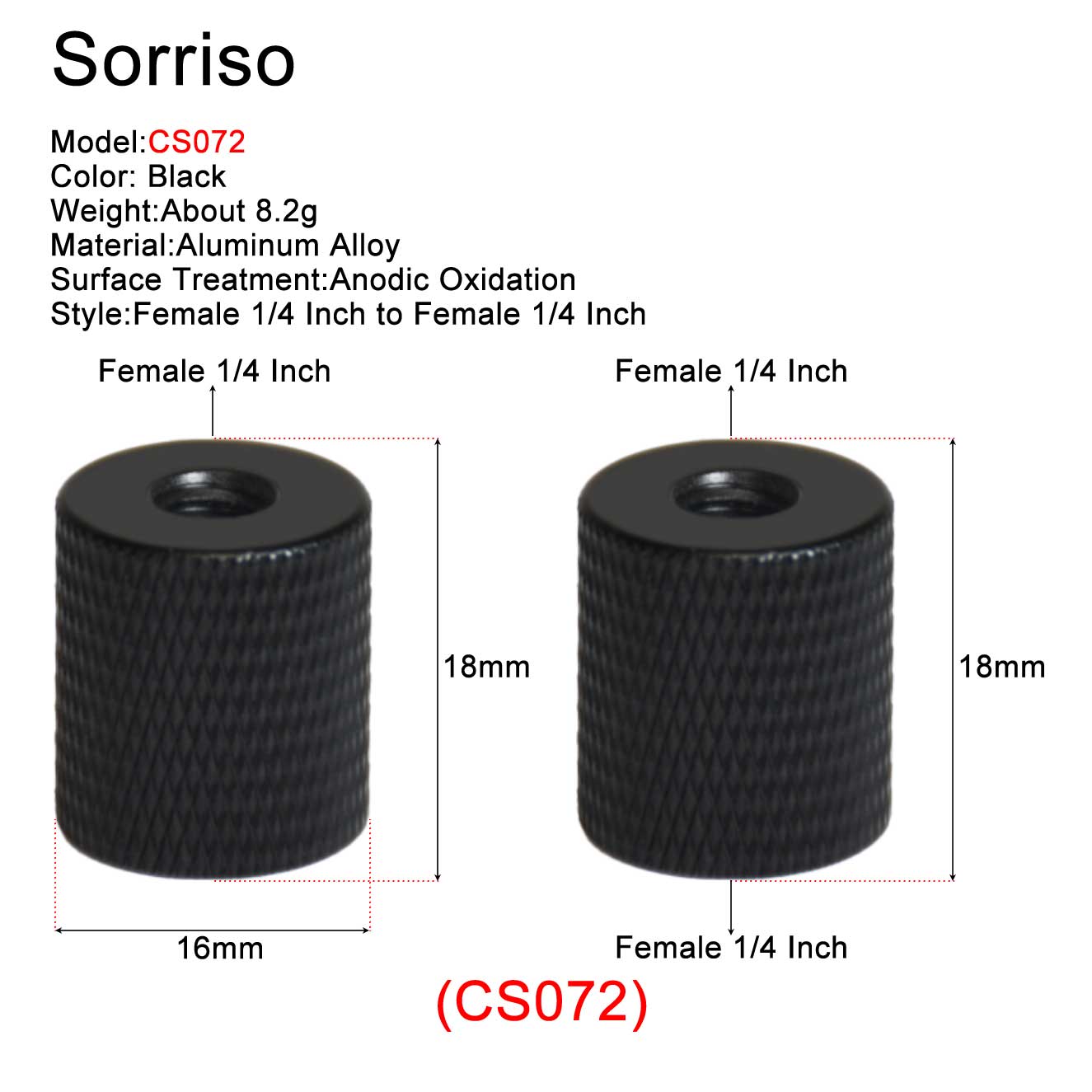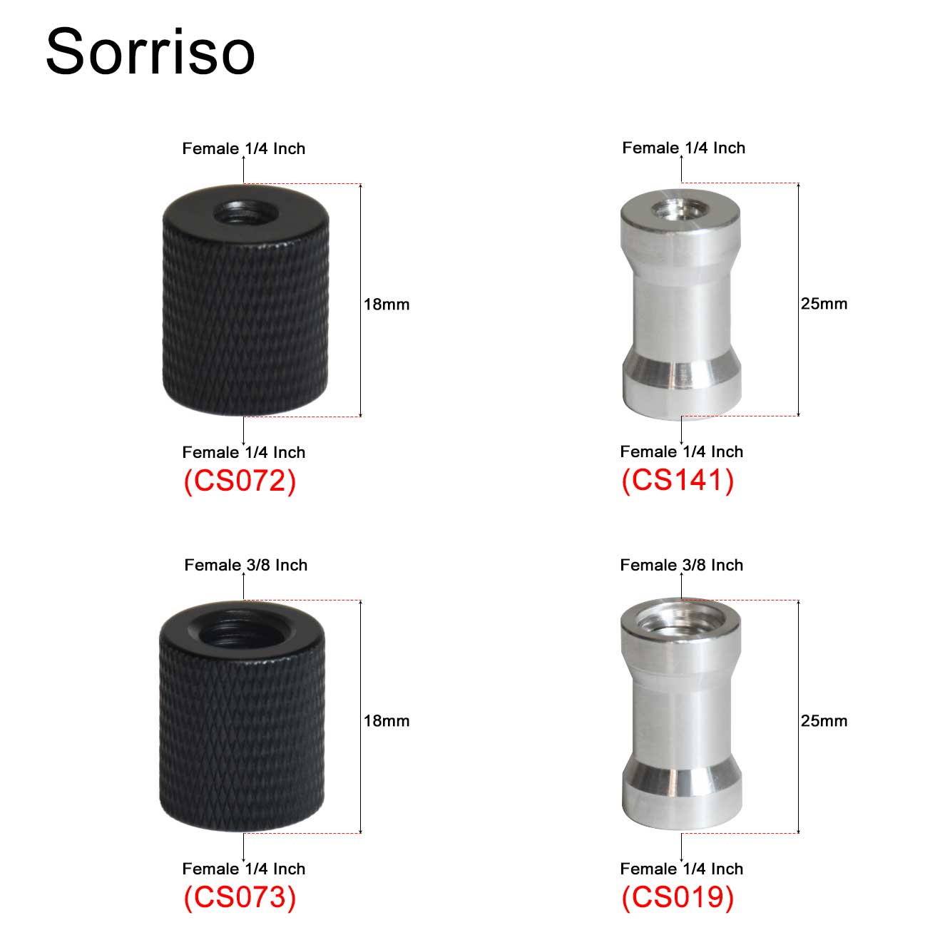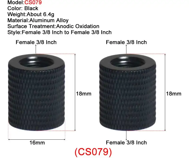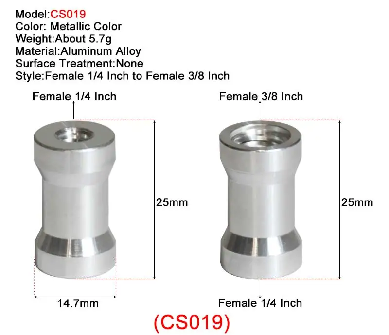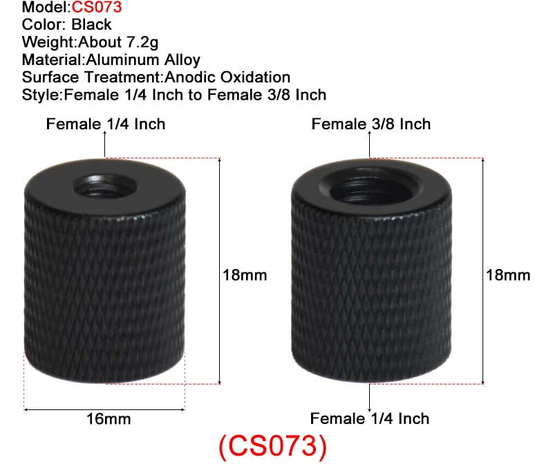 • CS073 и CS019: материал-алюминиевый сплав; Стиль женский от 1/4 дюйма до 3/8 дюйма.