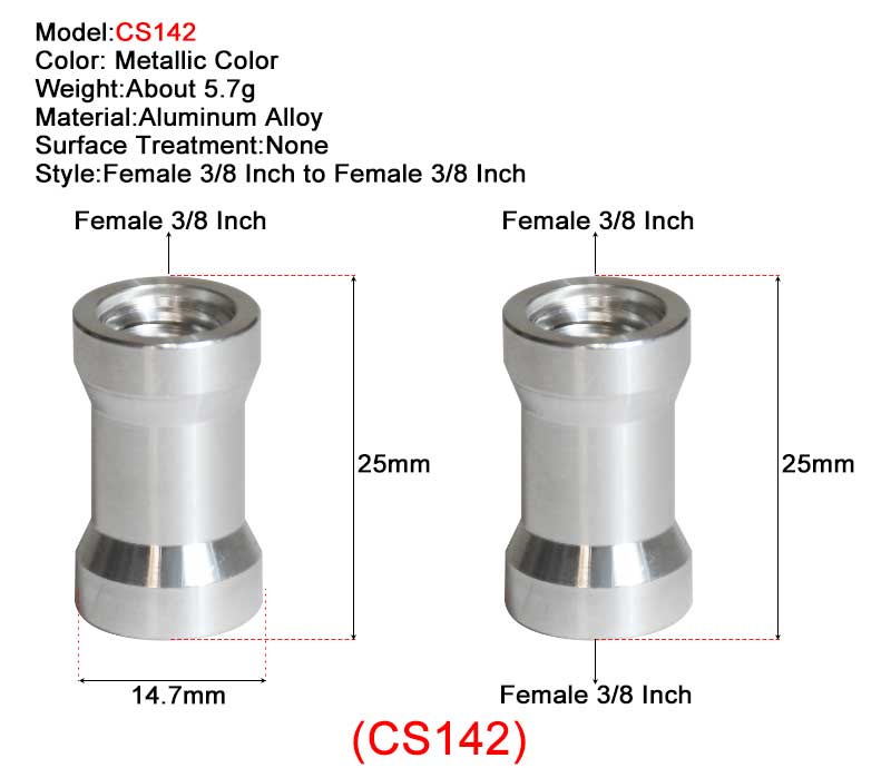 • CS079 и CS142: материал-алюминиевый сплав; Стиль-Женский 3/8-3/8 дюйма.