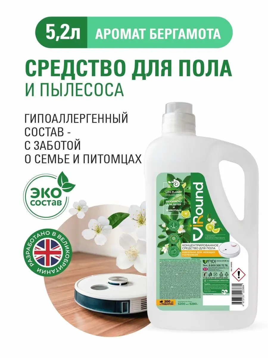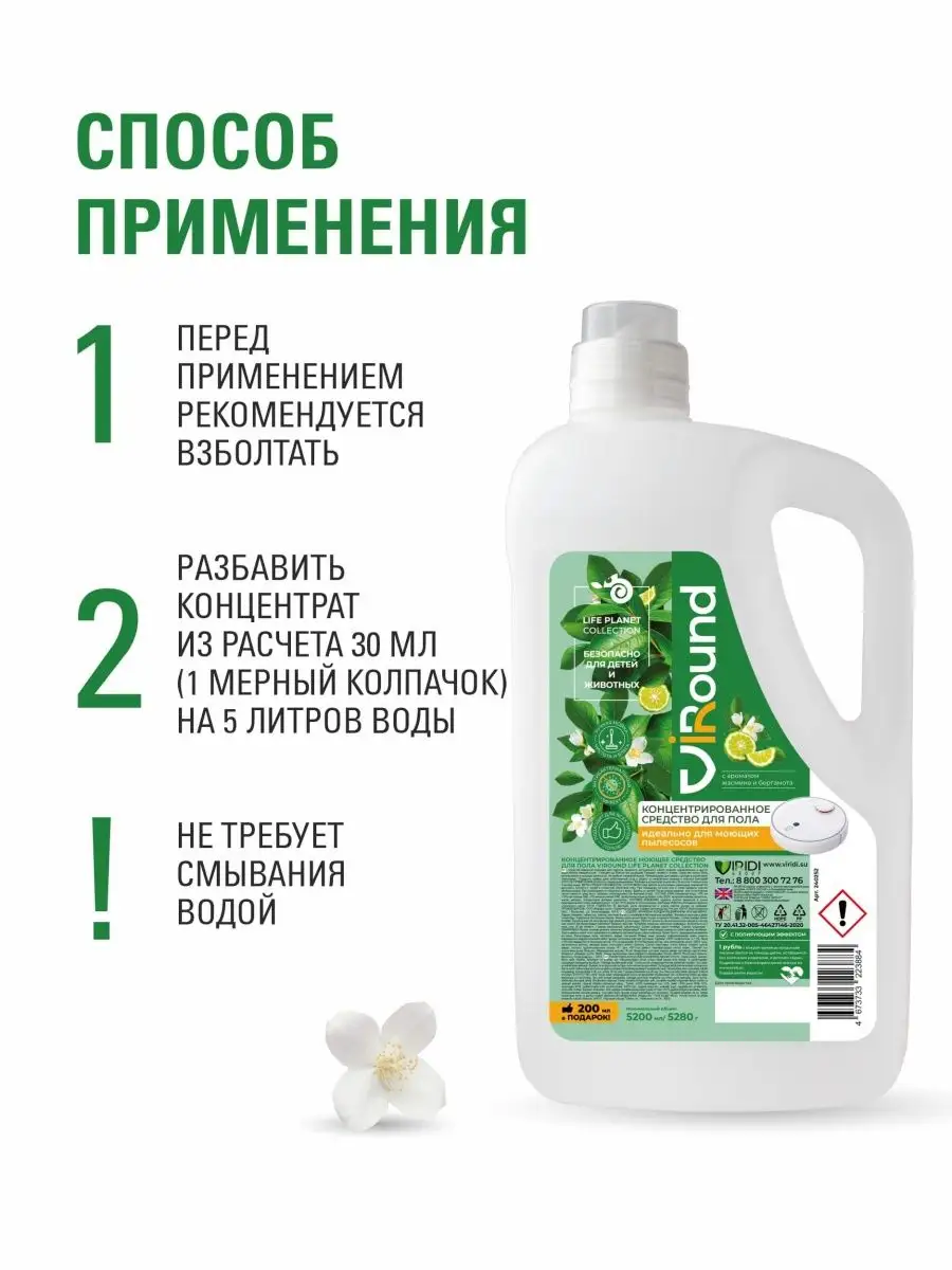 Описание: Моющее средство для пола, ковров и мебели Viround безопасно для любых поверхностей, в составе полирующий воск, который придает ослепительный блеск, обладает антистатическим эффектом. Чистящее средство антибактериально, гипоаллергенно экологично и безопасно - рекомендовано для домов с детьми и домашними животными. Идеально подходит для паркета, ламината, выведения пятен с ковров натурального камня кафеля на кухне лакированных и других водостойких поверхностей - очищает до блеска без разводов, придает свежесть. Средство предназначено для использования в роботах-пылесосах и в моющих пылесосах. Не требует смывания водой - чистота без липкости и развод надолго. Подарите своему дому качественные хозяйственные товары для уборки - защиту от неприятных запахов и опасных бактерий в ванной комнате и туалете! Суперконцентрат. 1 литра хватит на 1800 кв.м. Ароматная цветочная композиция содержит аккорды жасминового чая, прозрачные и лёгкие верхние ноты начинаются с яркого всплеска лотоса и итальянского лимона, а средний ноты сверкают свежестью белого пиона и водяной лилии, глубокие и неповторимые базовые ноты: цветок цитруса, иланг-иланг и сандаловое дерево. Бытовая химия разрабатываются специально для всей семьи и уборки вашего дома. Мы тщательно анализируем каждый ингредиент, прежде чем он попадёт в наши продукты. В составе натуральные компоненты природного происхождения, в том числе биоразлагаемые ПАВ. Подтвержденный сертификат безопасности. Собственное современное производство, начиная с тары до конечного продукта и НАУЧНО-ИССЛЕДОВАТЕЛЬСКИЙ ЦЕНТР В ВЕЛИКОБРИТАНИИ. Покупая этот товар - ВЫ ПОМОГАЕТЕ ДЕТЯМ! Компания VIRIDI GROUP имеет выраженную социальную направленность и отчисляет с каждой проданной единицы продукции денежные средства на адресную помощь детским садам. Линейка продукта доступна в упаковках различного объема - ознакомиться со всей продукцией нашего бренда Viround вы можете, нажав на на логотип магазина Viridi Group справа.