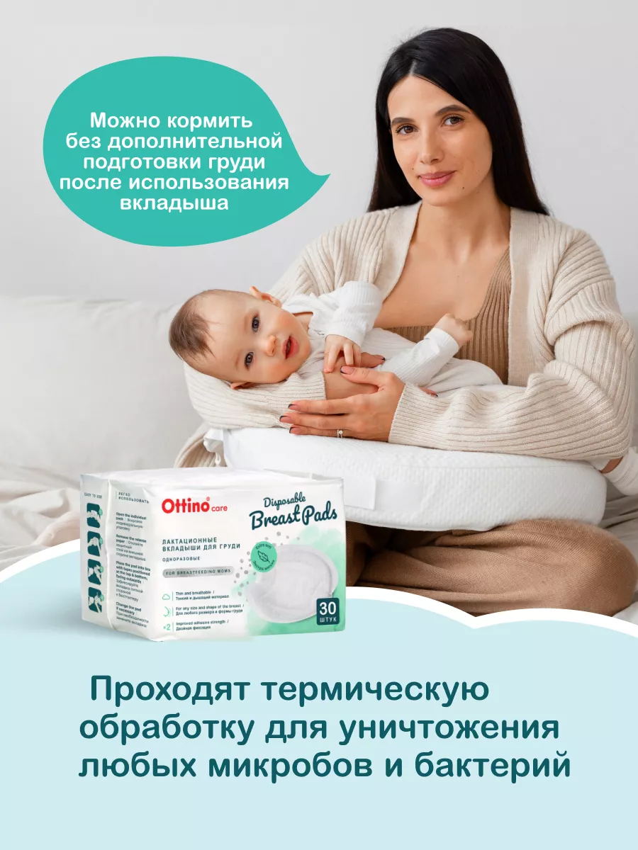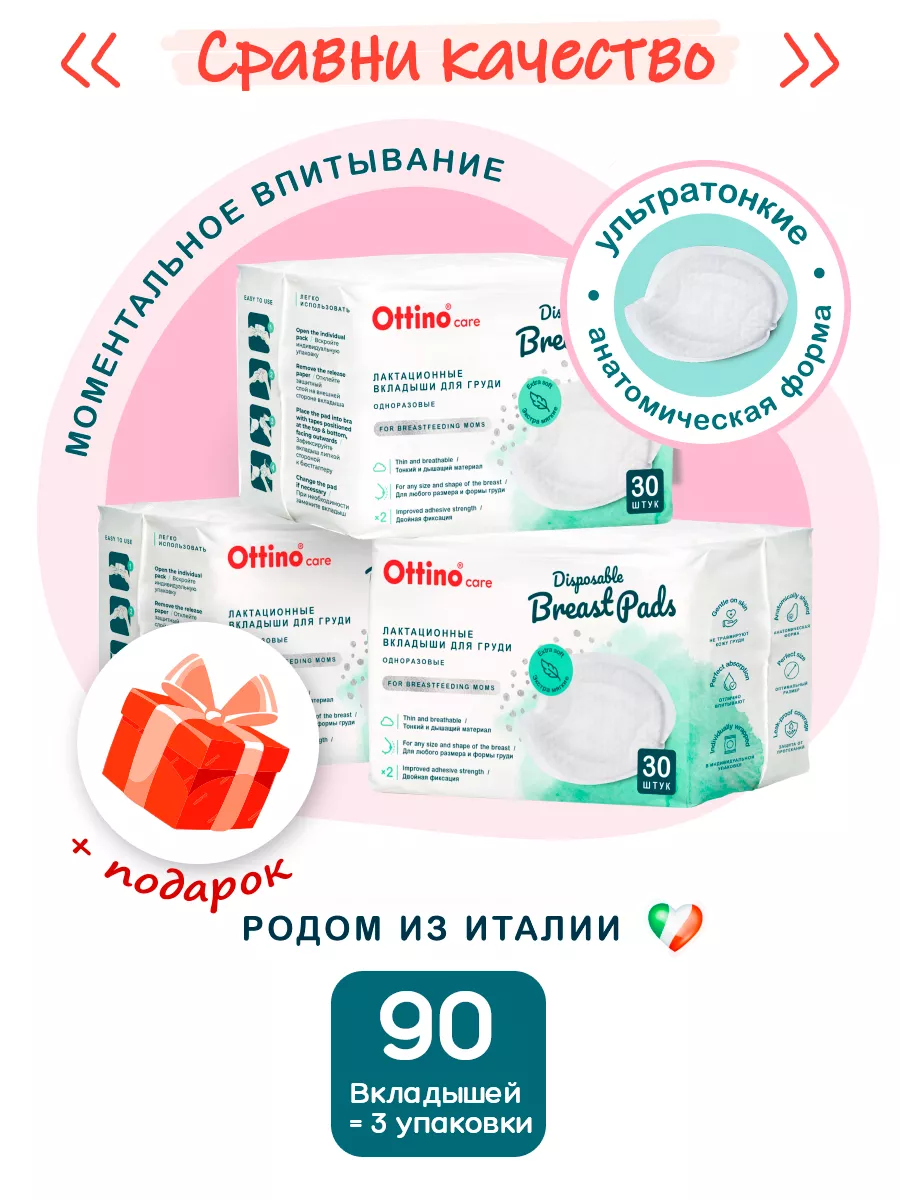 Комплектация 90 прокладок для груди; 3 упаковки по 30 штук