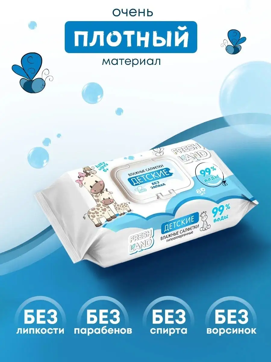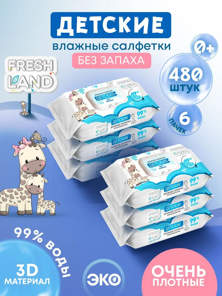 Влажные детские салфетки 99% воды Жираф 6х80 шт. с клапаном