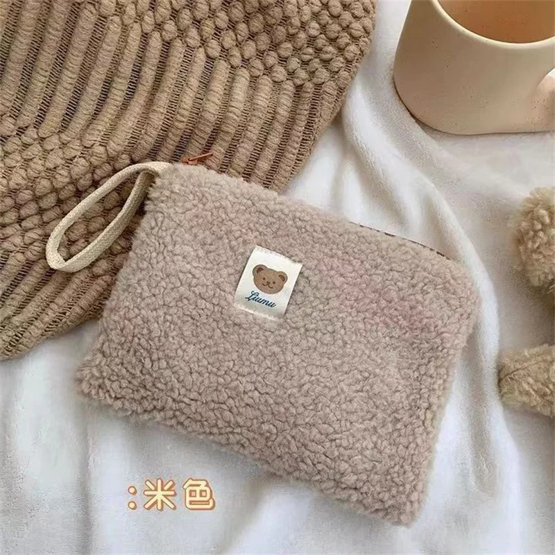 Вместительная милая плюшевая дорожная косметичка для губной помады, сумка для хранения женских косметических принадлежностей, сумка-Органайзер, кошелек, косметичка для карандашей