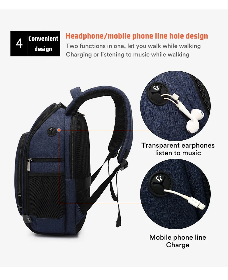 6. С дизайном отверстия для наушников можно подключить телефон, который находится в сумке, через отверстие, чтобы слушать музыку или заряжать от внешнего источника питания.
