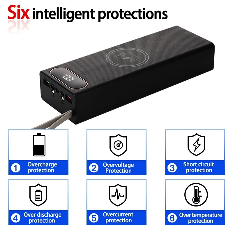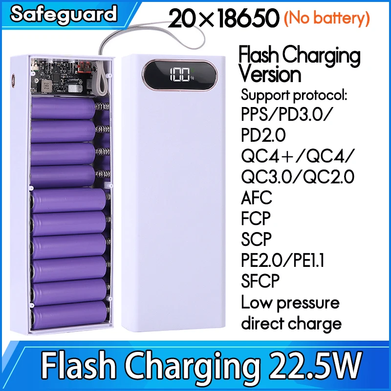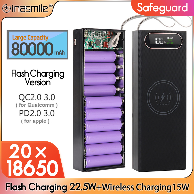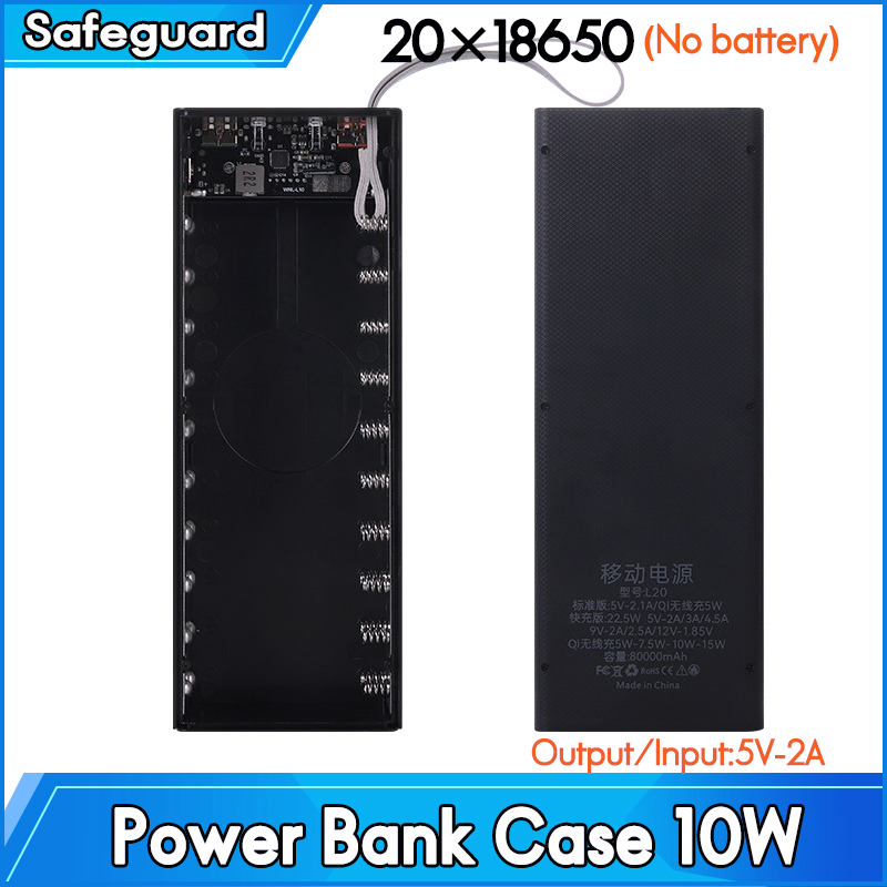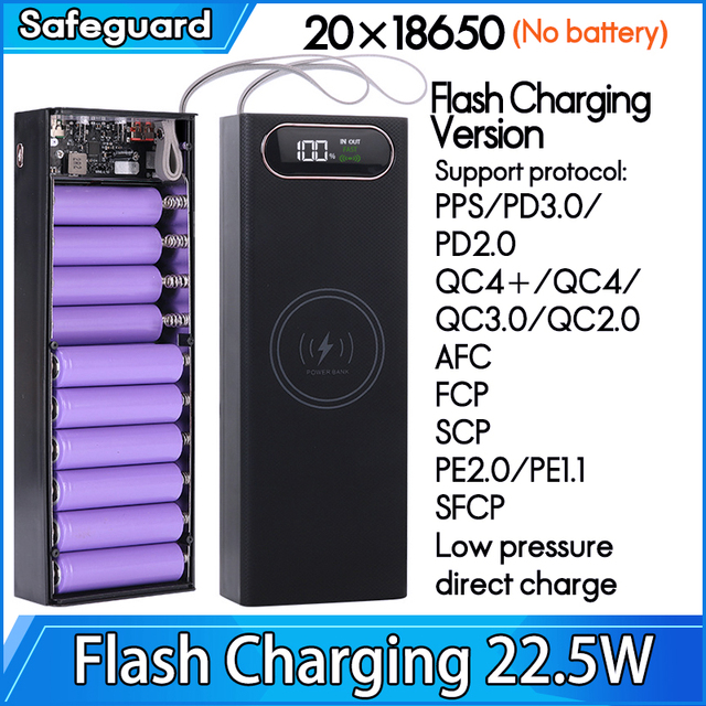 20x 18650 Аккумулятор Power Bank Чехол Держатель зарядного устройства Двойной USB ЖК-дисплей Поддержка быстрой беспроводной зарядки Корпус для хранения батареи