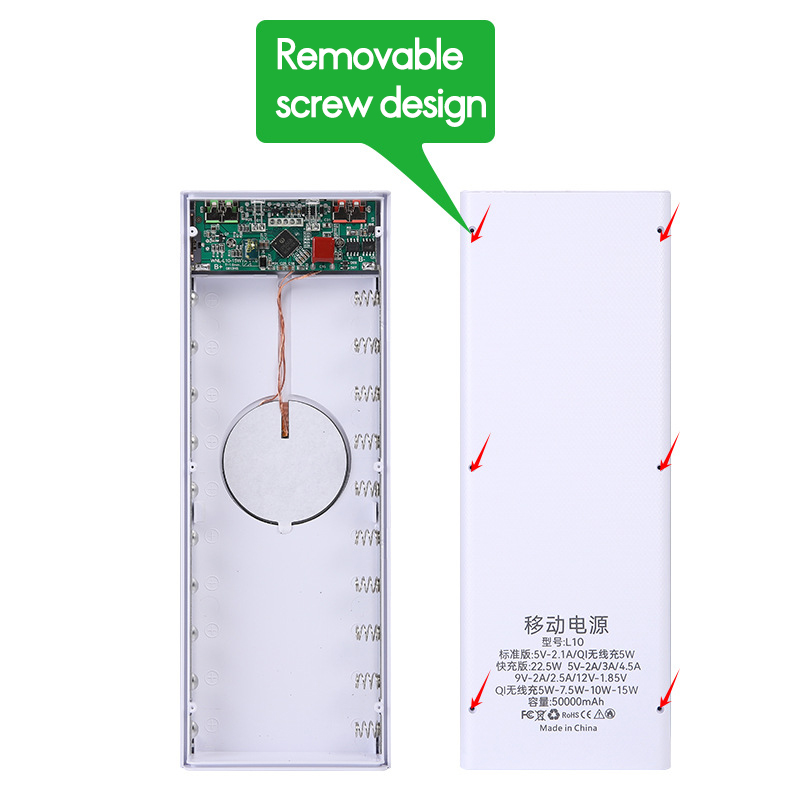 Примечание: Батарейный отсек мощностью 10 Вт нельзя снять после установки, а батарейный отсек мощностью 22,5 Вт с винтами можно снять. Только для батарей с плоской головкой.