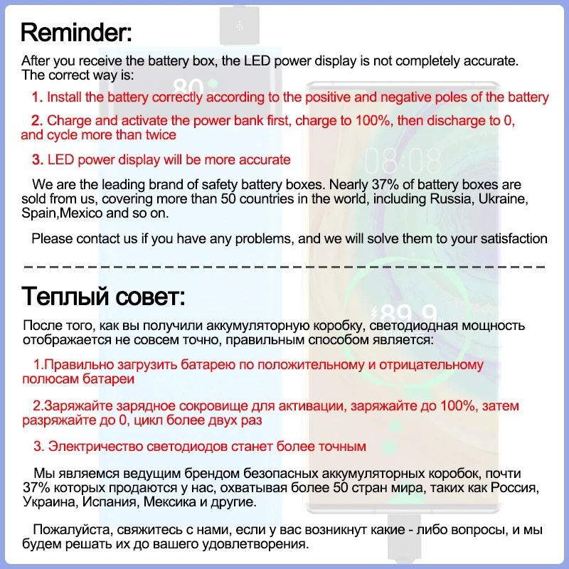 2. Сначала зарядите и активируйте блок питания, зарядите до 100%, затем разрядите до 0 и выполните цикл более двух раз.