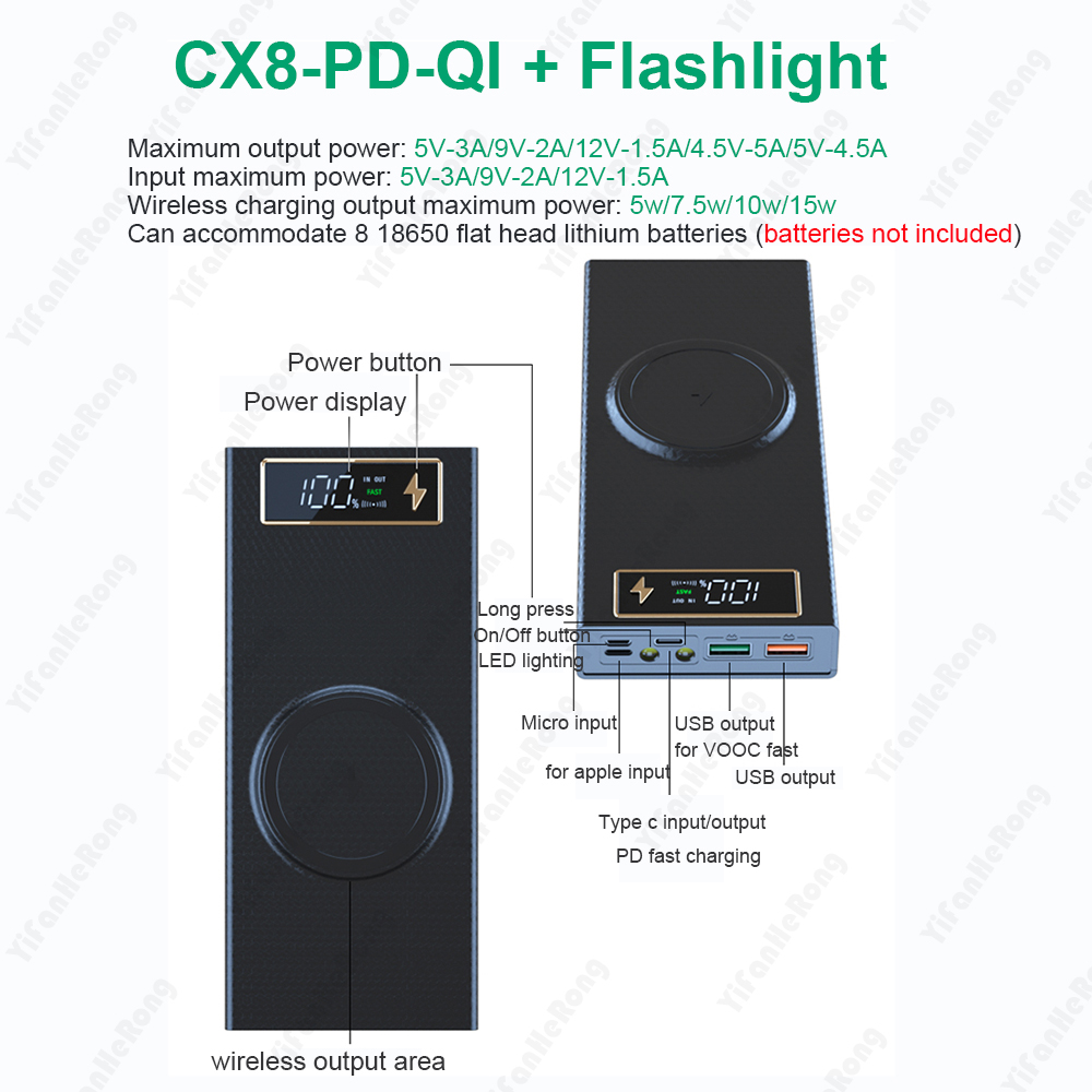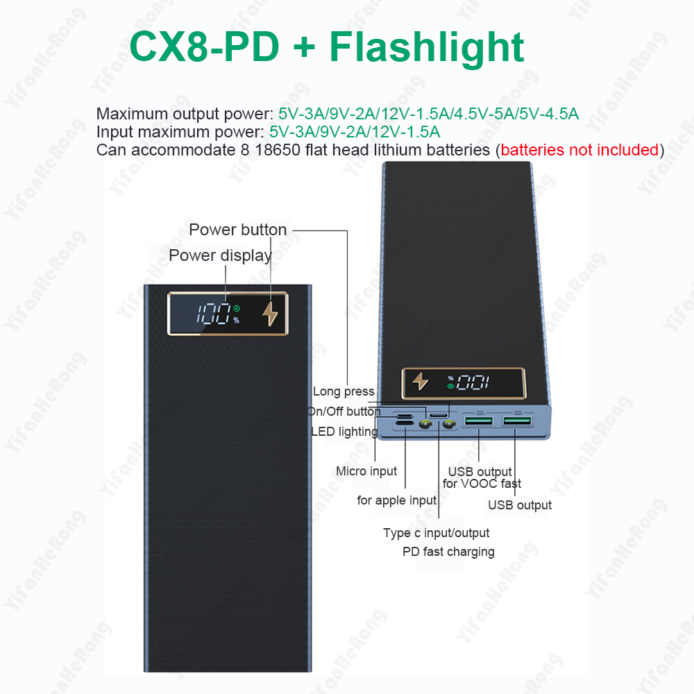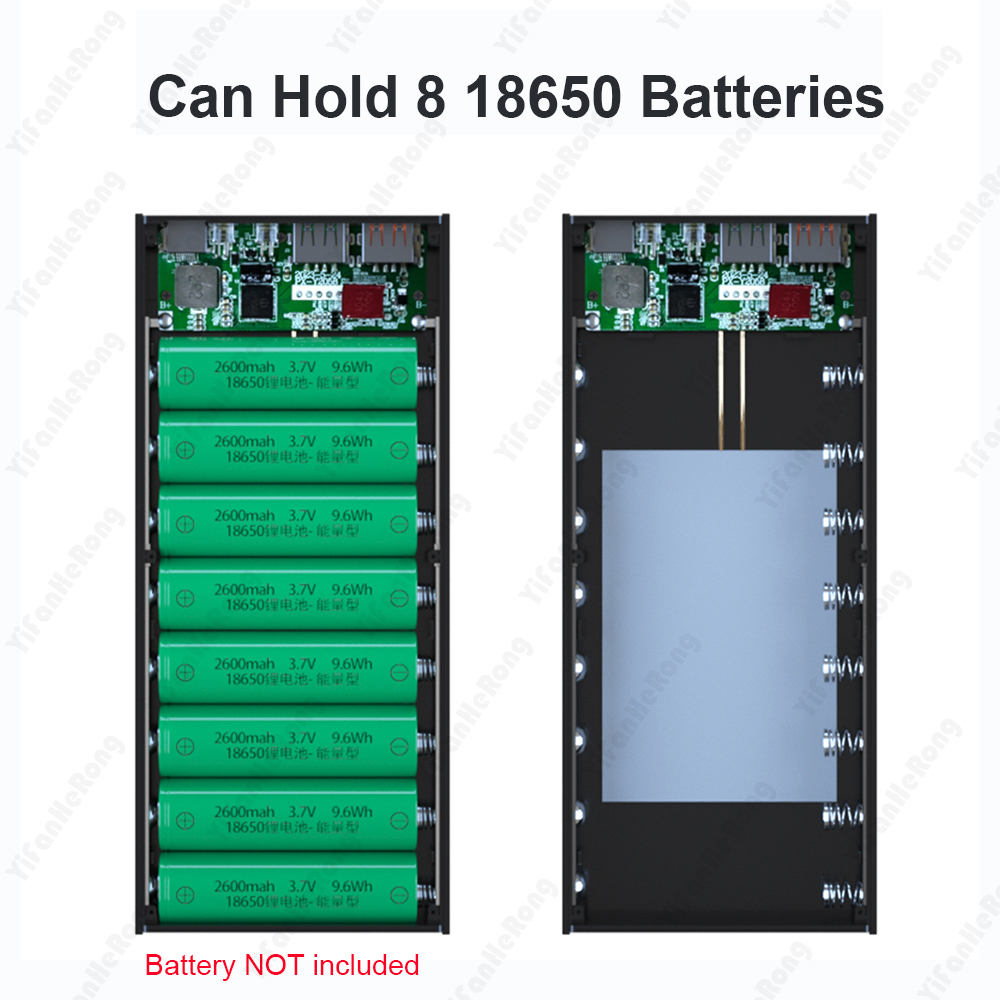 Внешний аккумулятор 8*18650 для самостоятельной сборки, зарядное устройство, контейнер для хранения с двумя USB-портами типа C, держатель аккумулятора PD QC3.0, быстрая зарядка для смартфонов
