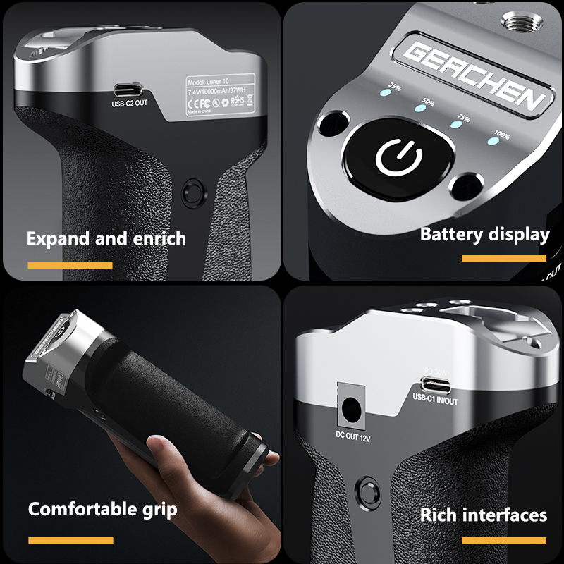 Внешний аккумулятор GEACHEN Lunar10 с универсальной ручкой для аккумулятора, внешний аккумулятор, внешний аккумулятор для SLR и Canon R5 R6, микрокамера с одним движением