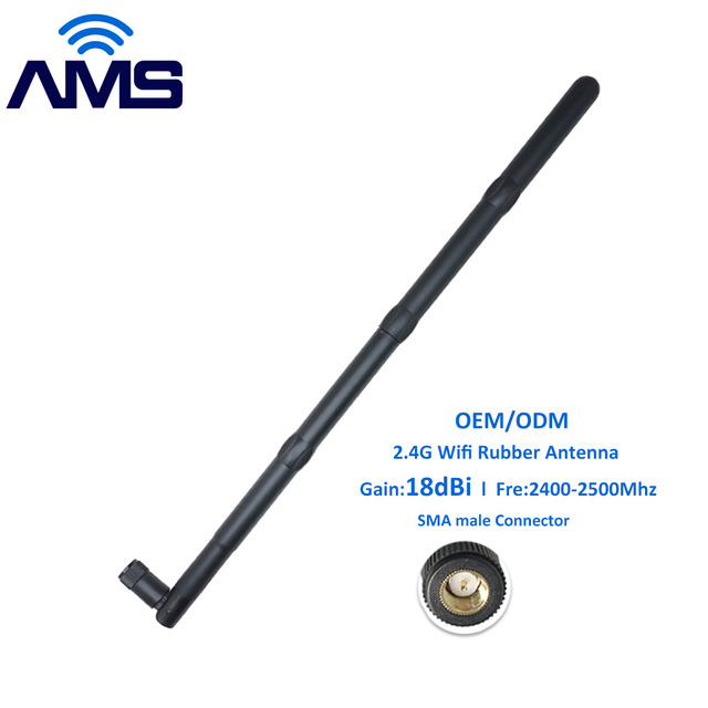 AMS оптовая продажа с фабрики внешняя SMA мужская резиновая утка беспроводной маршрутизатор Антенна 2400-2500mhz 18 High dBi omni 2,4g wifi hf антенна