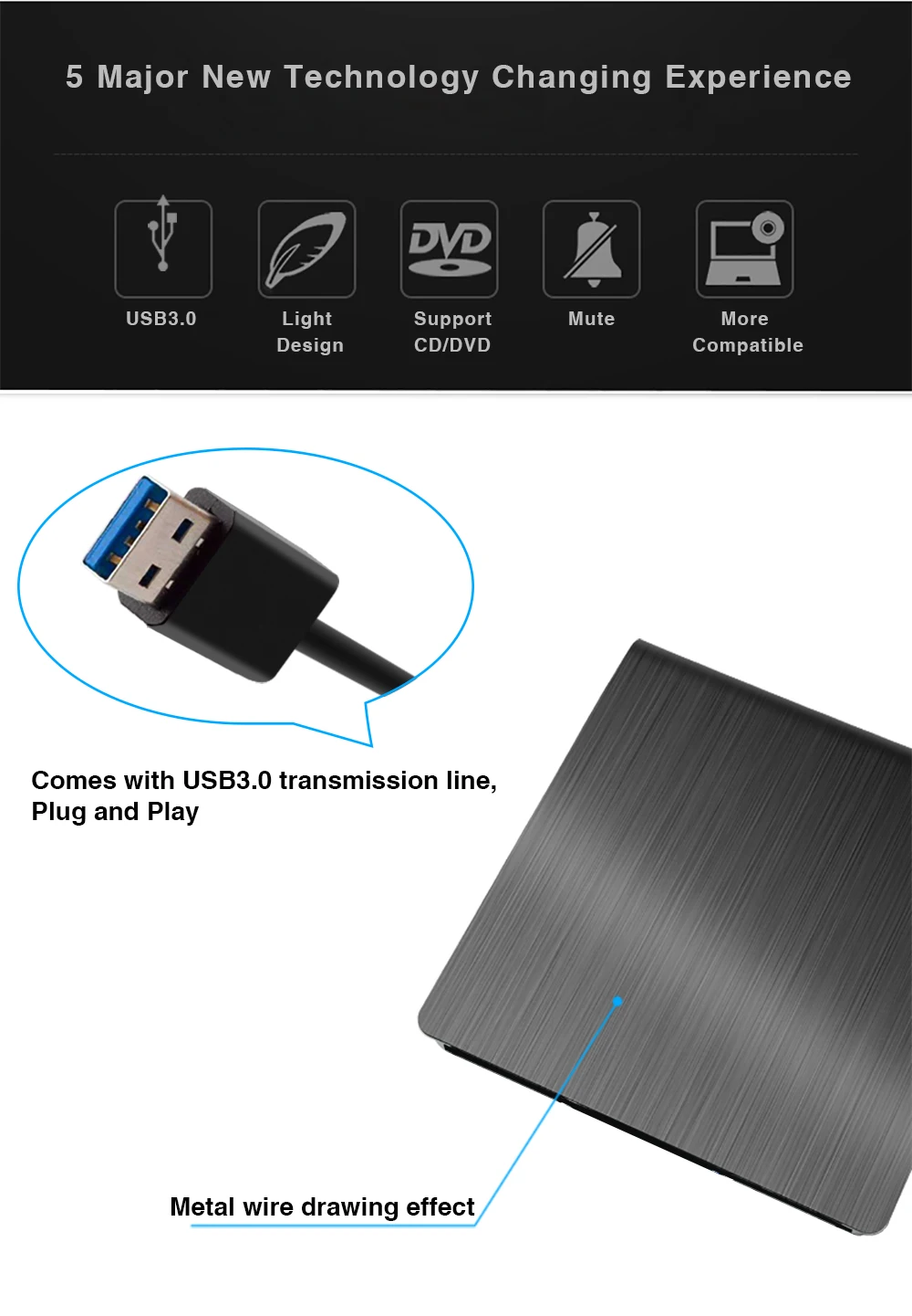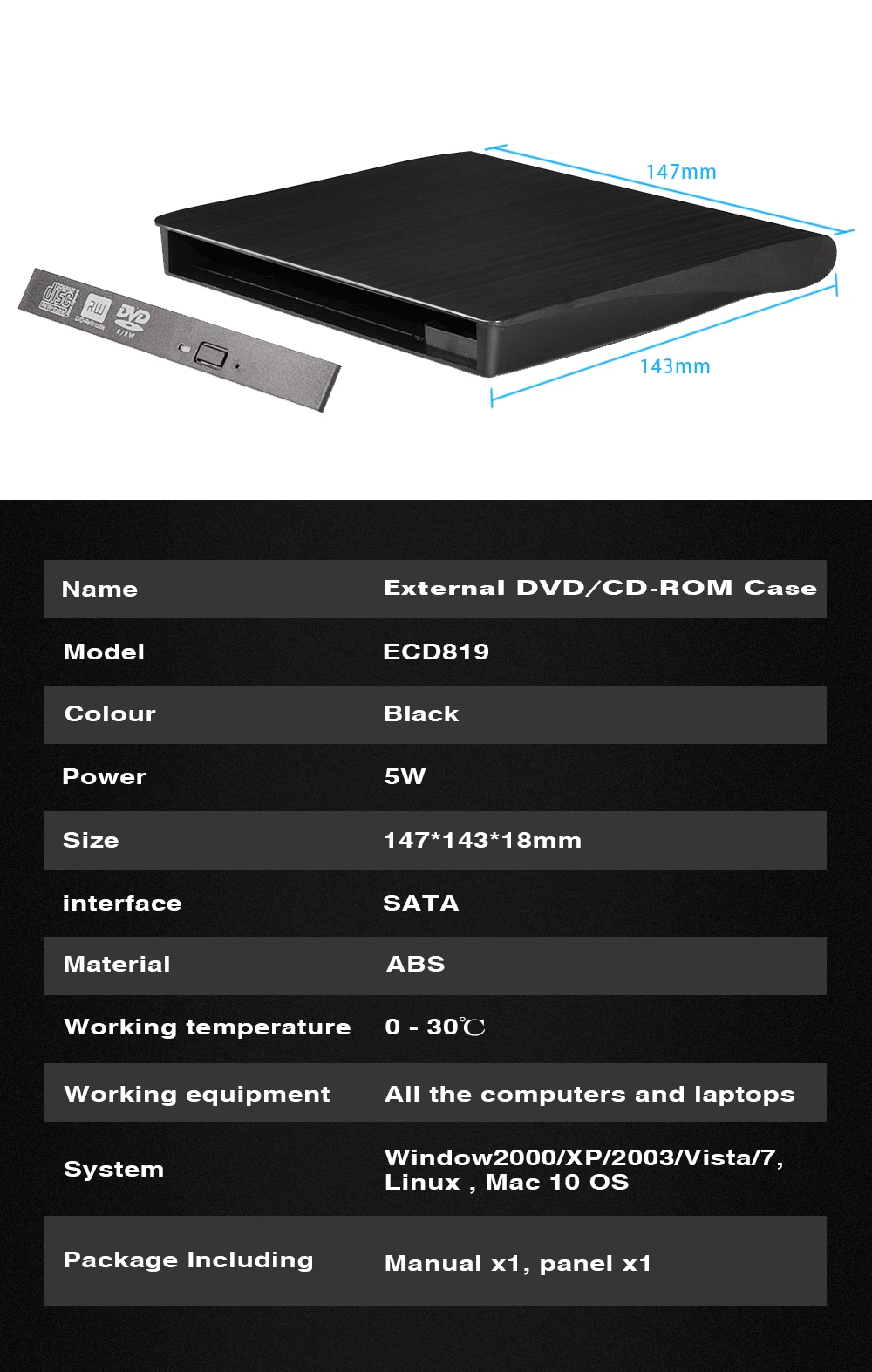 Примечание: 1.Это просто внешний корпус для DVD,В комплект не входит CD-ROM-накопитель.