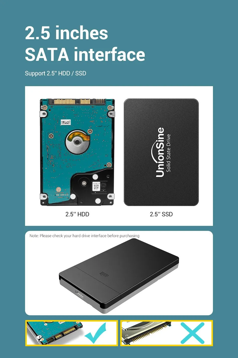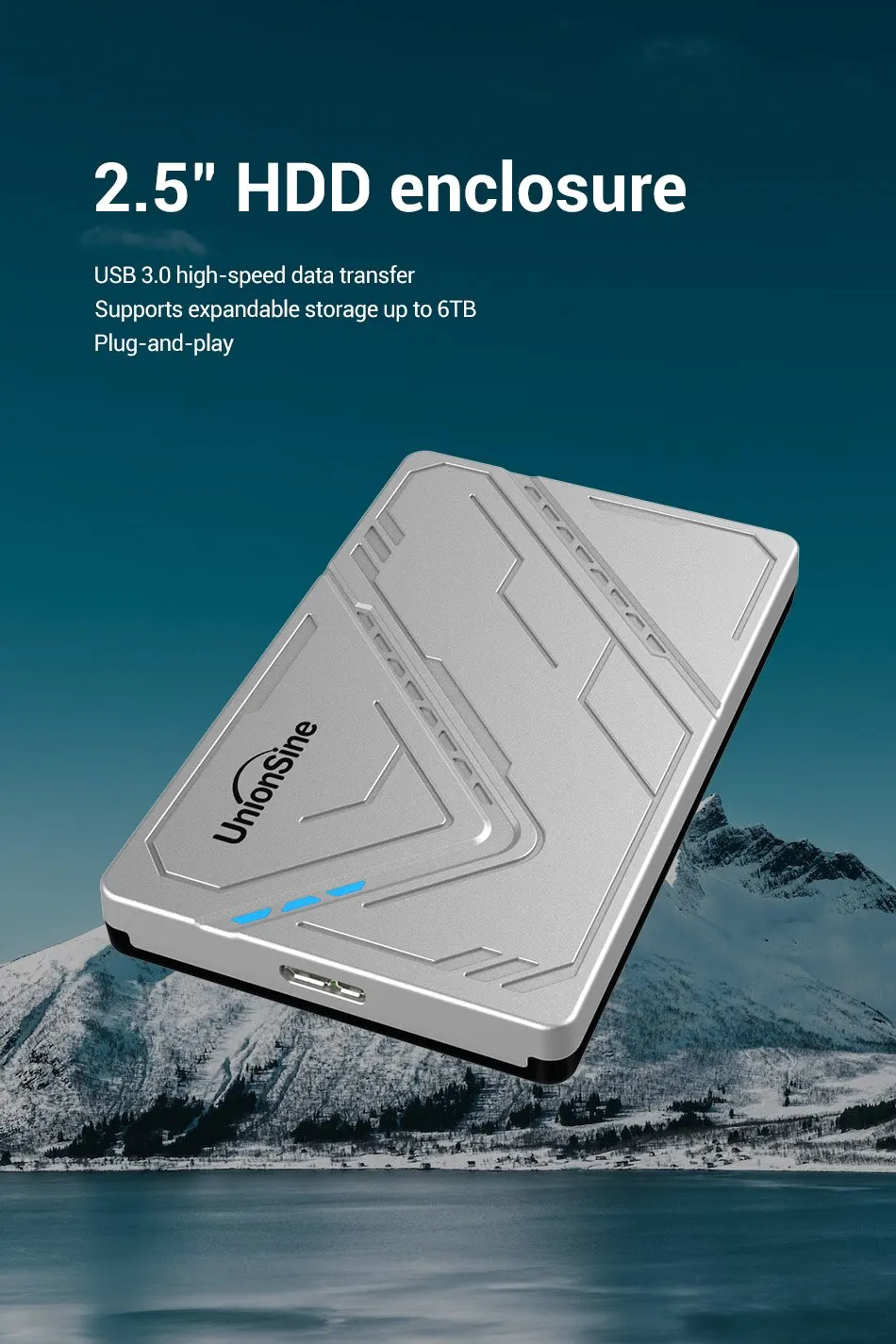 Внешний накопитель UnionSine USB 3,0 MicroB, 2,5 дюйма, HDD чехол SATA 6 Гбит/с, HDD SSD, корпус жесткого диска с поддержкой UASP для ПК и ноутбука