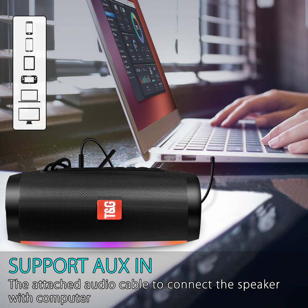 TG157 светодиодный мигающий свет Bluetooth-совместимый динамик портативный с веревкой Открытый громкоговоритель 1200 мАч ткань водонепроницаемый сабвуфер FM-радио