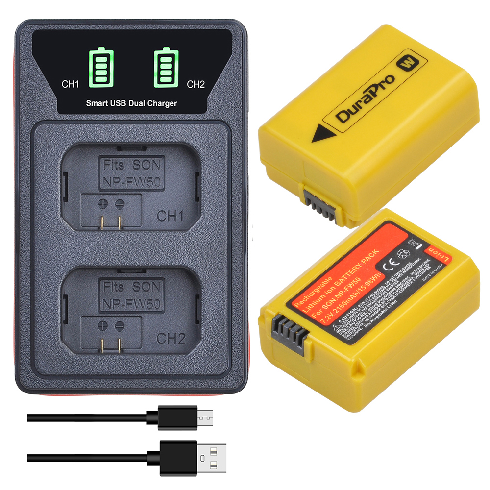 DuraPro 2160mAh NP-FW50 Bateria NP FW50 NPFW50 Аккумулятор Akku + светодиодное зарядное устройство для Sony Alpha a6500 a6300 a7 7R a7R a7R II a7II NEX-3 NEX-5 детали