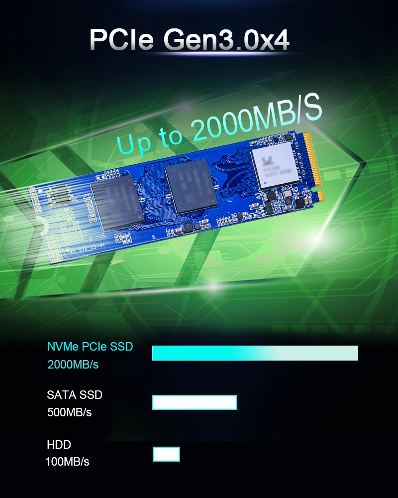 При подключении к интерфейсу PCIe 3,0x2 скорость будет ниже.