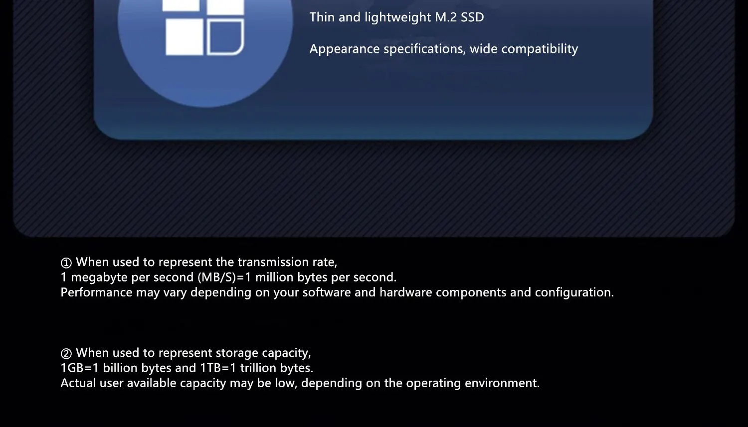 TBW (терабайт записи) рассчитывается с использованием рабочей нагрузки клиента JEDEC (JESD219) и варьируется в зависимости от емкости продукта.