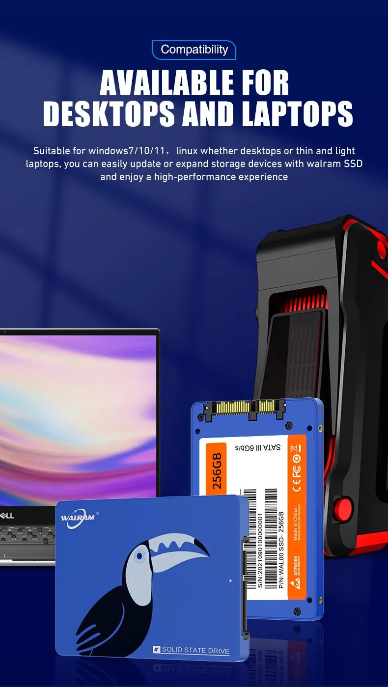 • Внутренний твердотельный накопитель:Walram SSD-это Внутренний твердотельный накопитель, что означает, что он установлен внутри вашего ноутбука или настольного ПК для повышения производительности.