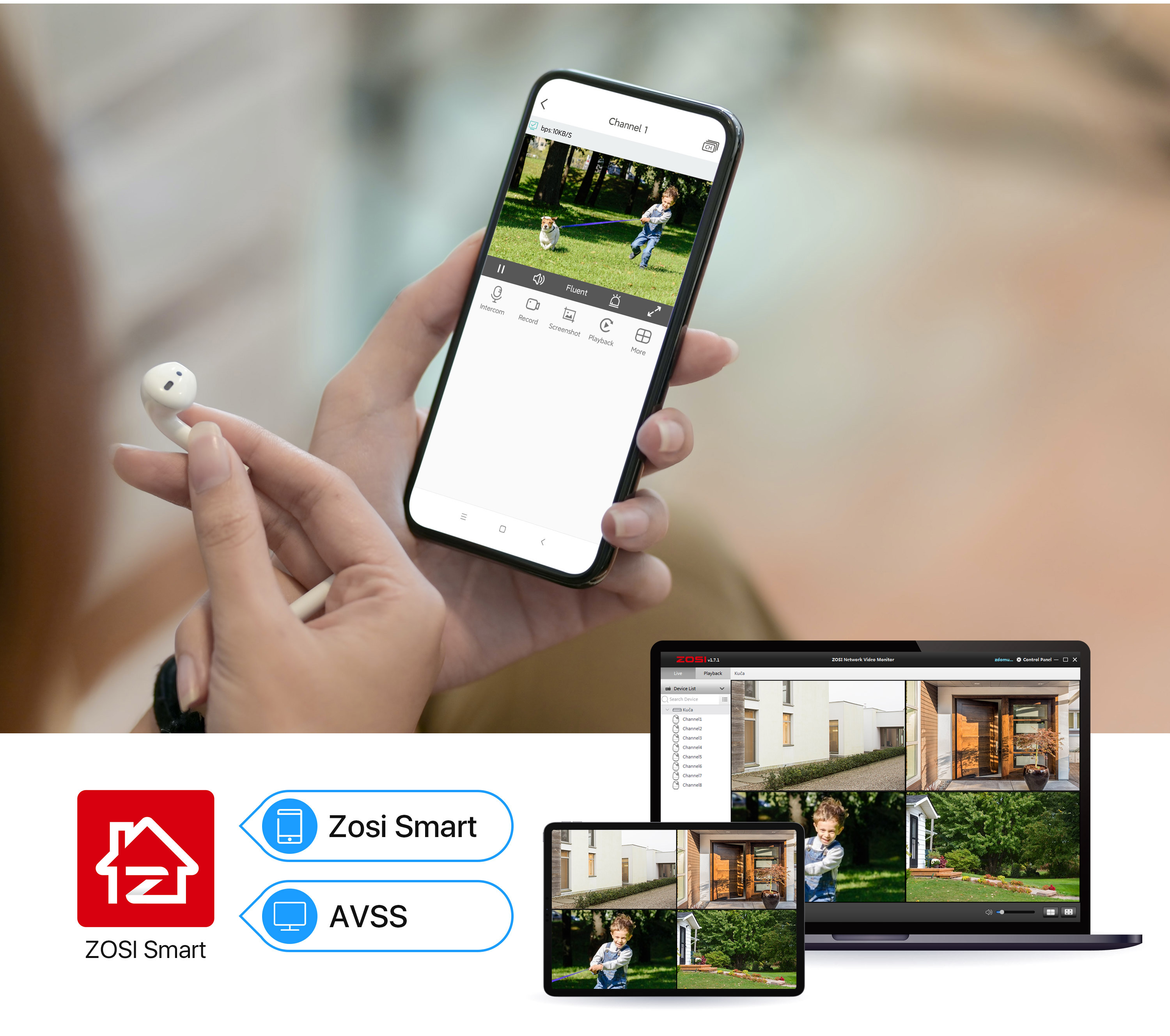 Собираетесь ли вы в командировку, уезжаете из города на выходные или просто оставляете детей дома на пару часов. Приложение Zosi Smart позволяет легко проверять ваш дом издалека-Смотрите прямые трансляции, удаленно Воспроизводите любое записанное видео и Управляйте своей системой безопасности 24/7 на своих мобильных устройствах через приложение Zosi Smart App.