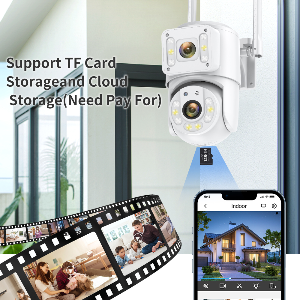 Эта камера наблюдения поддерживает два варианта хранения: хранилище для карт TF и Облачное хранилище (доступно за плату).