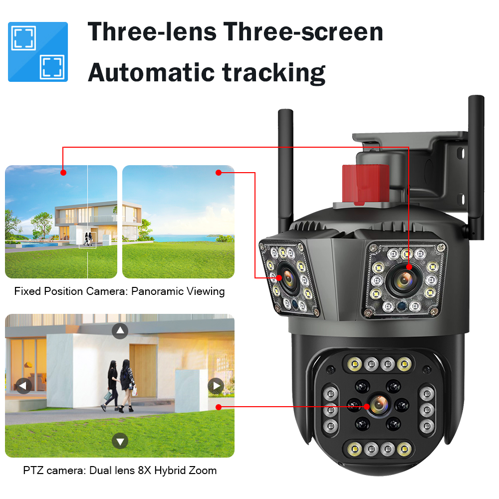 Камера 6K 12MP обеспечивает мониторинг трех изображений в реальном времени, два верхних объектива фиксированы, а нижний можно поворачивать