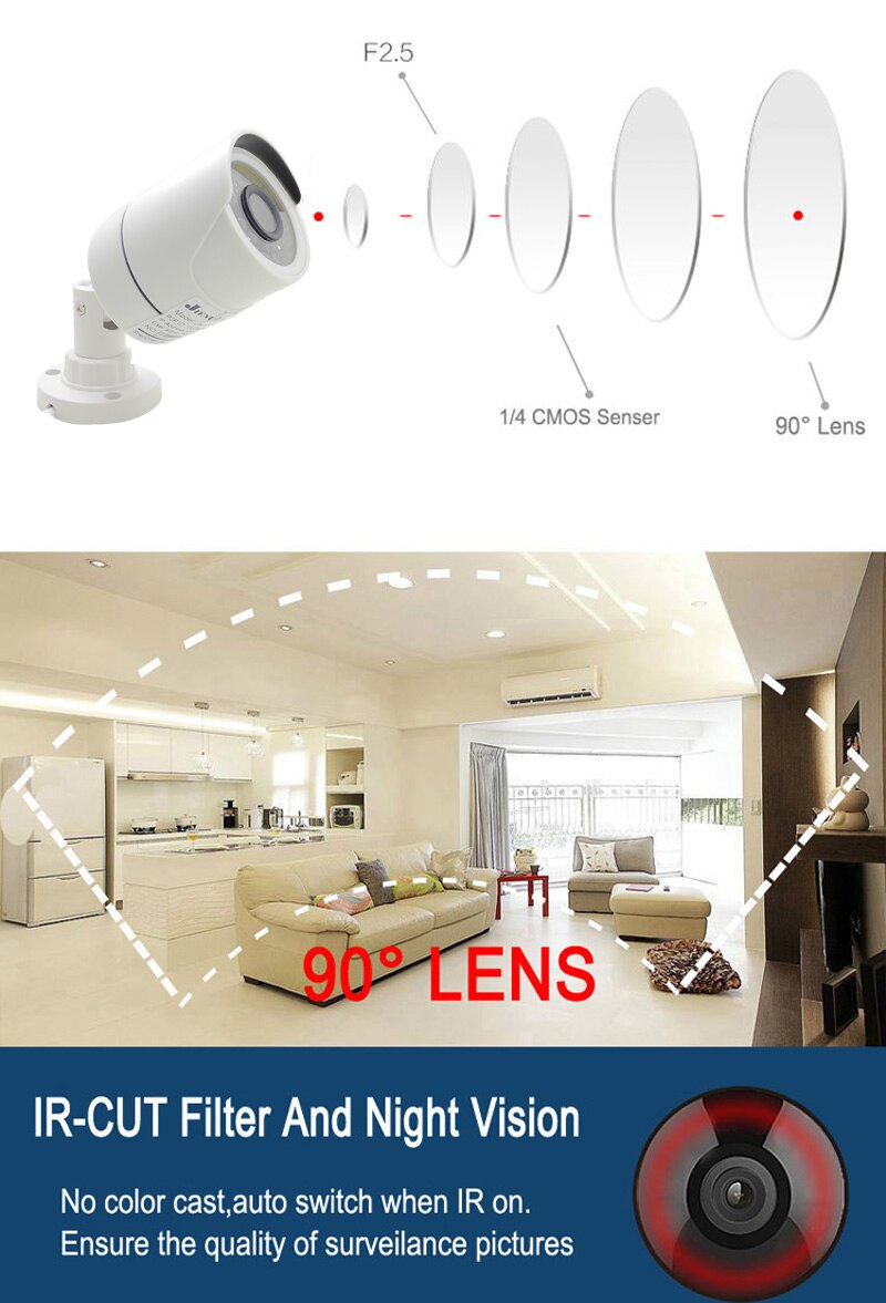 8. HD AHD-камера-это стандарт аналоговой передачи HD-видео по коаксиальному кабелю, позволяющий передавать HD-видео на большие расстояния с меньшими затратами, что соответствует требованиям для сложной и большой установки.