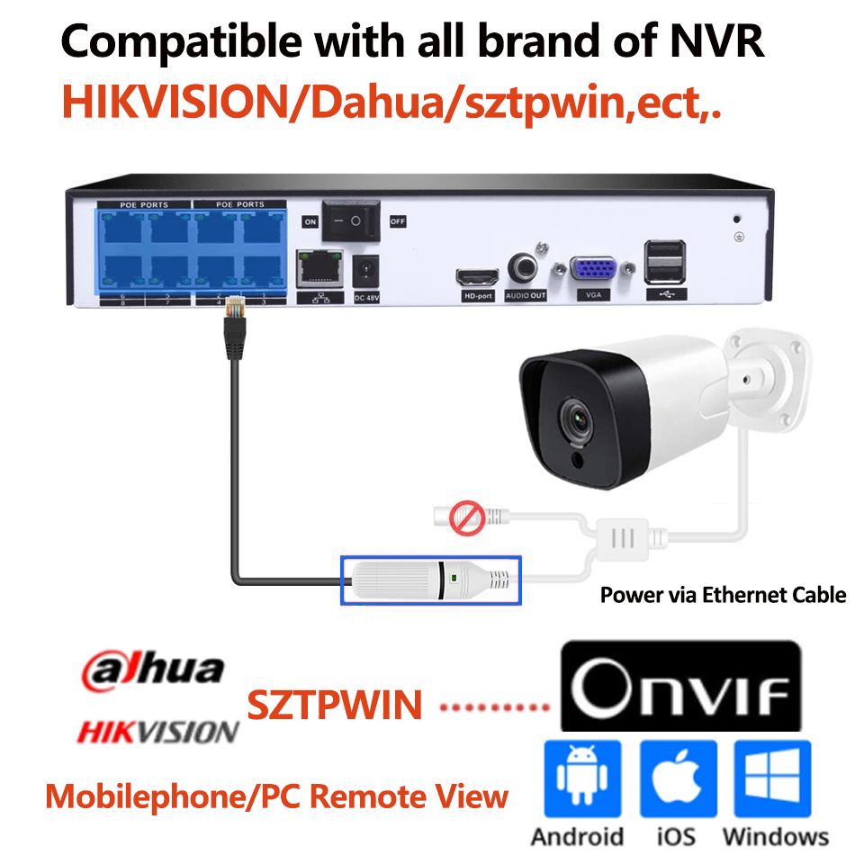 Протестировали наши IP-камеры без POE и IP-камеры POE, они совместимы с Hilkvision NVR и Dahua NVR по протоколу ONVIF