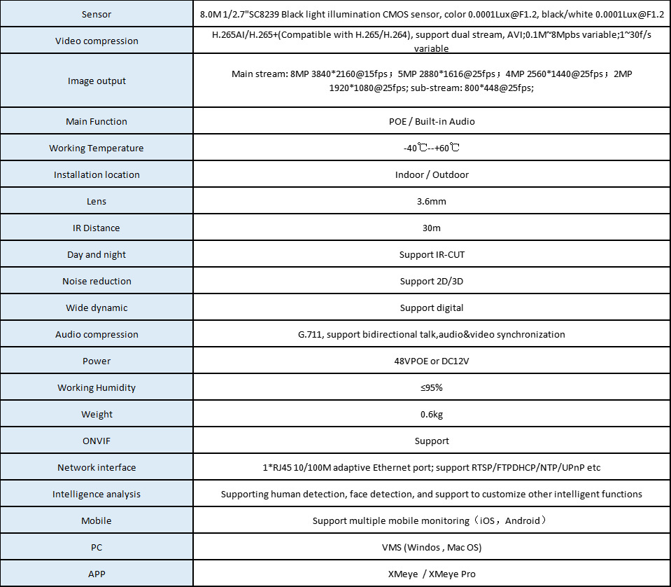 Водонепроницаемая IP-камера видеонаблюдения XMEYE, 8 Мп, 4K, POE, H265, V80M