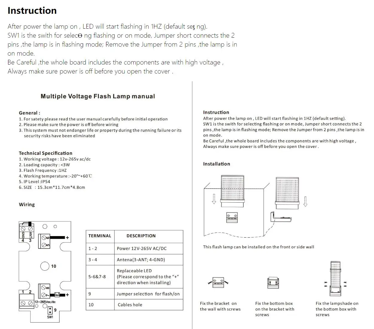 1. Напряжение: 12-265 В переменного/постоянного тока