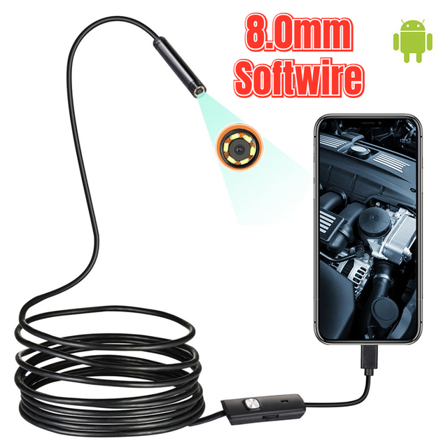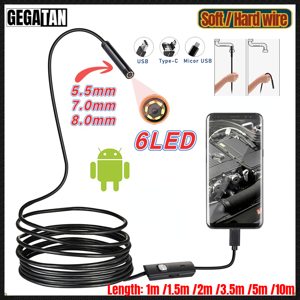 НОВАЯ мини-эндоскопическая камера Водонепроницаемый эндоскоп Регулируемый SoftWire Hardwire 6 светодиодов 5,5/7/8 мм Android Type-C USB-эндоскопический