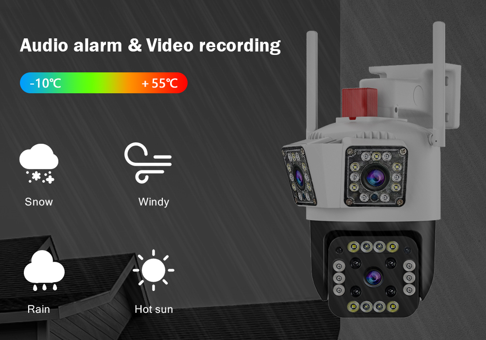 Что самое главное, как наружная камера? Водонепроницаемый, конечно! Водонепроницаемость IP66, которая подходит для большинства сценариев использования, и вам не нужно беспокоиться о повреждении камеры, вызванным дождем и снегом.