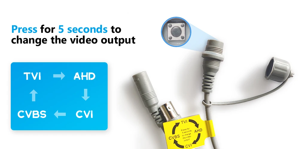 Стандартный режим камеры-это HD-TVI камера (для HD-TVI DVR), поэтому, если ваша система AHD/ CVI/CVBS, пожалуйста, сначала Настройте камеру в тот же режим с помощью вашей системы через контроллер переключателя на основе инструкции на изображении на контроллере переключателя, В противном случае изображения не будут показаны или качество изображения может быть нехорошим.