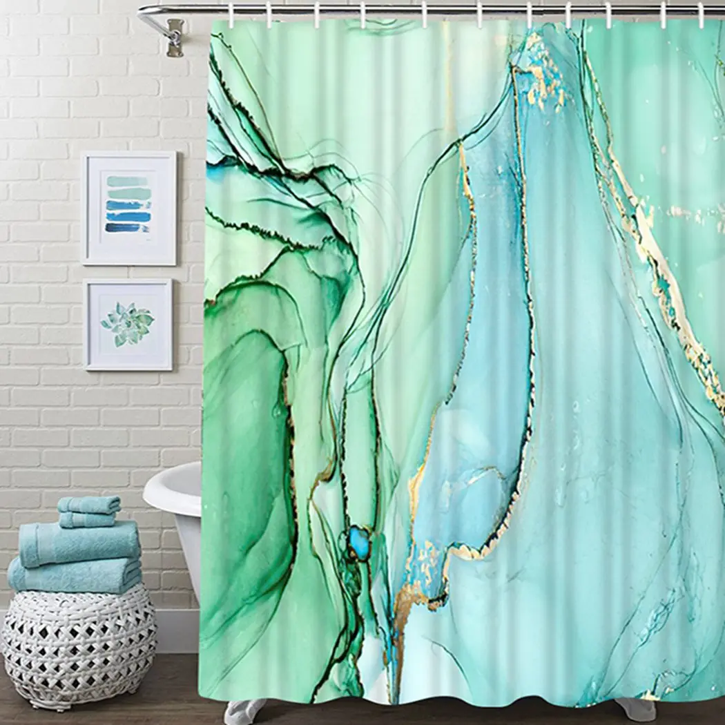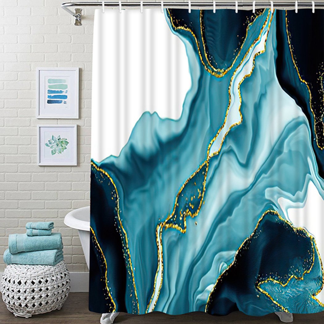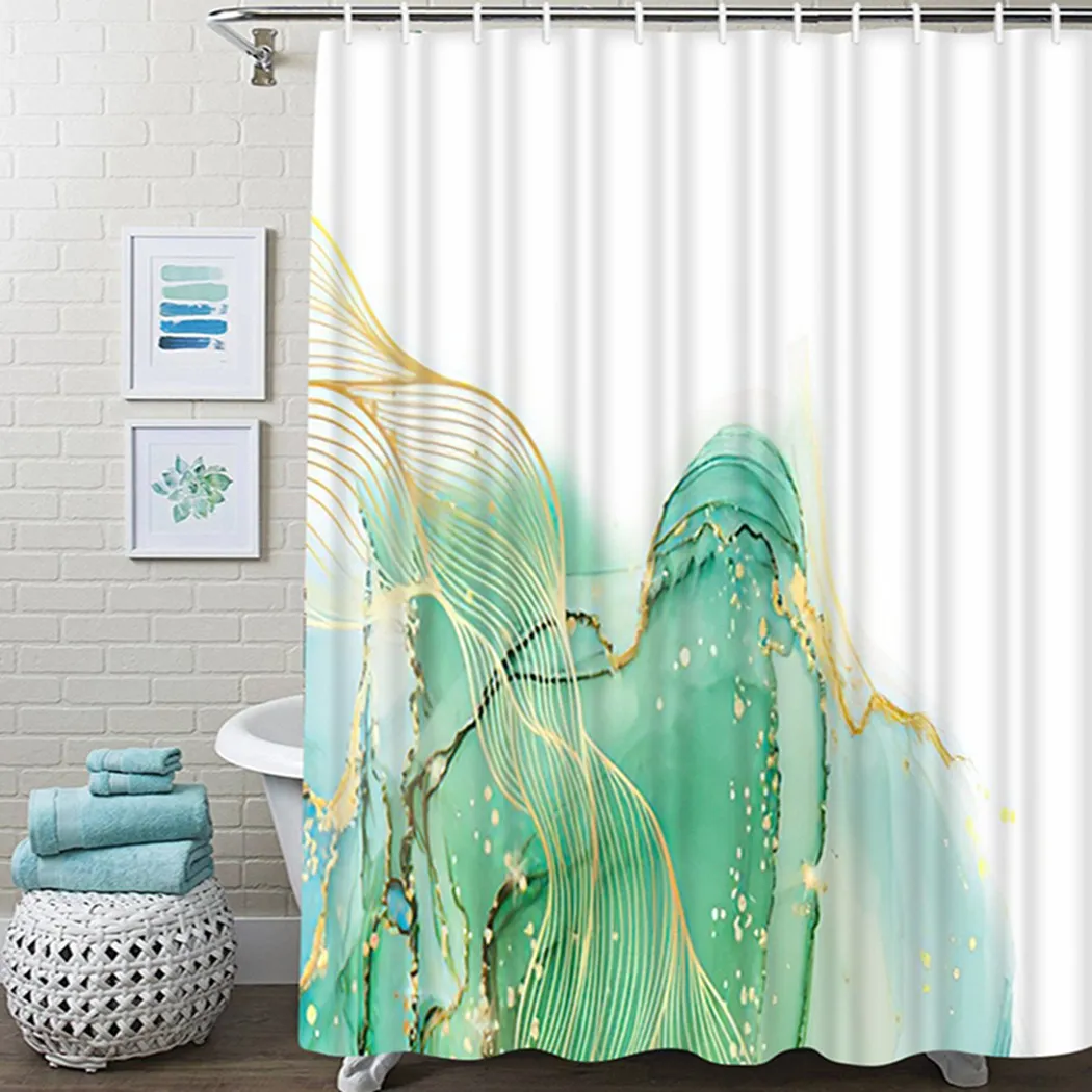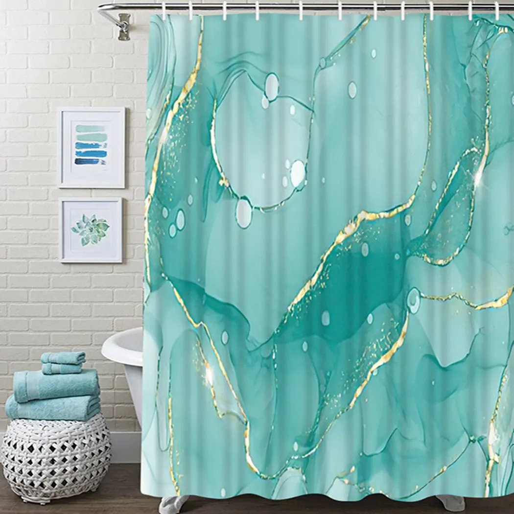 Водонепроницаемая шторка для ванной из полиэстера, с золотыми линиями и бирюзовым принтом