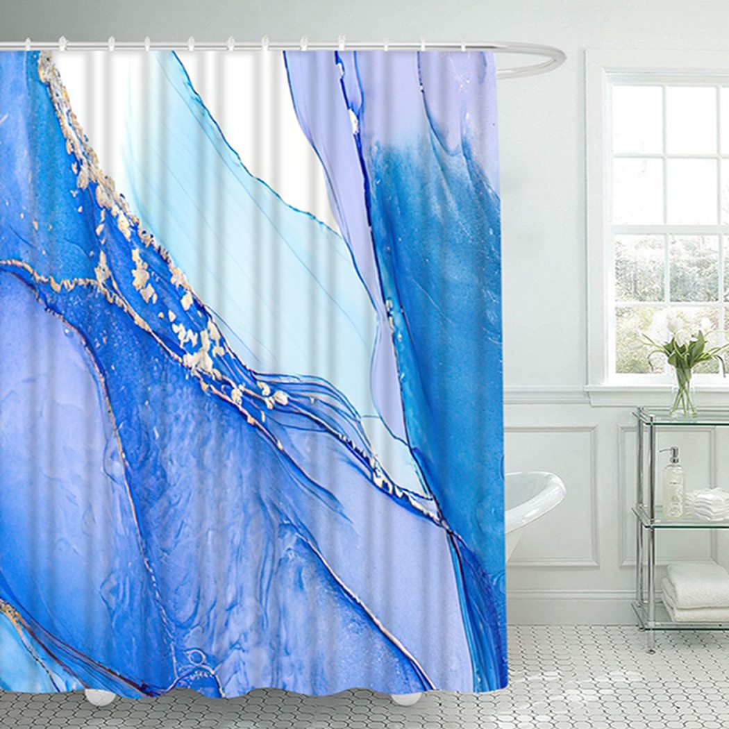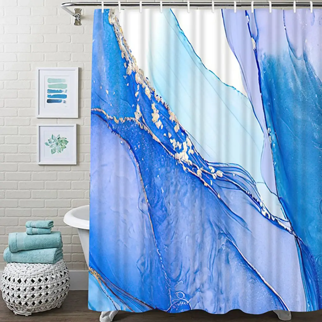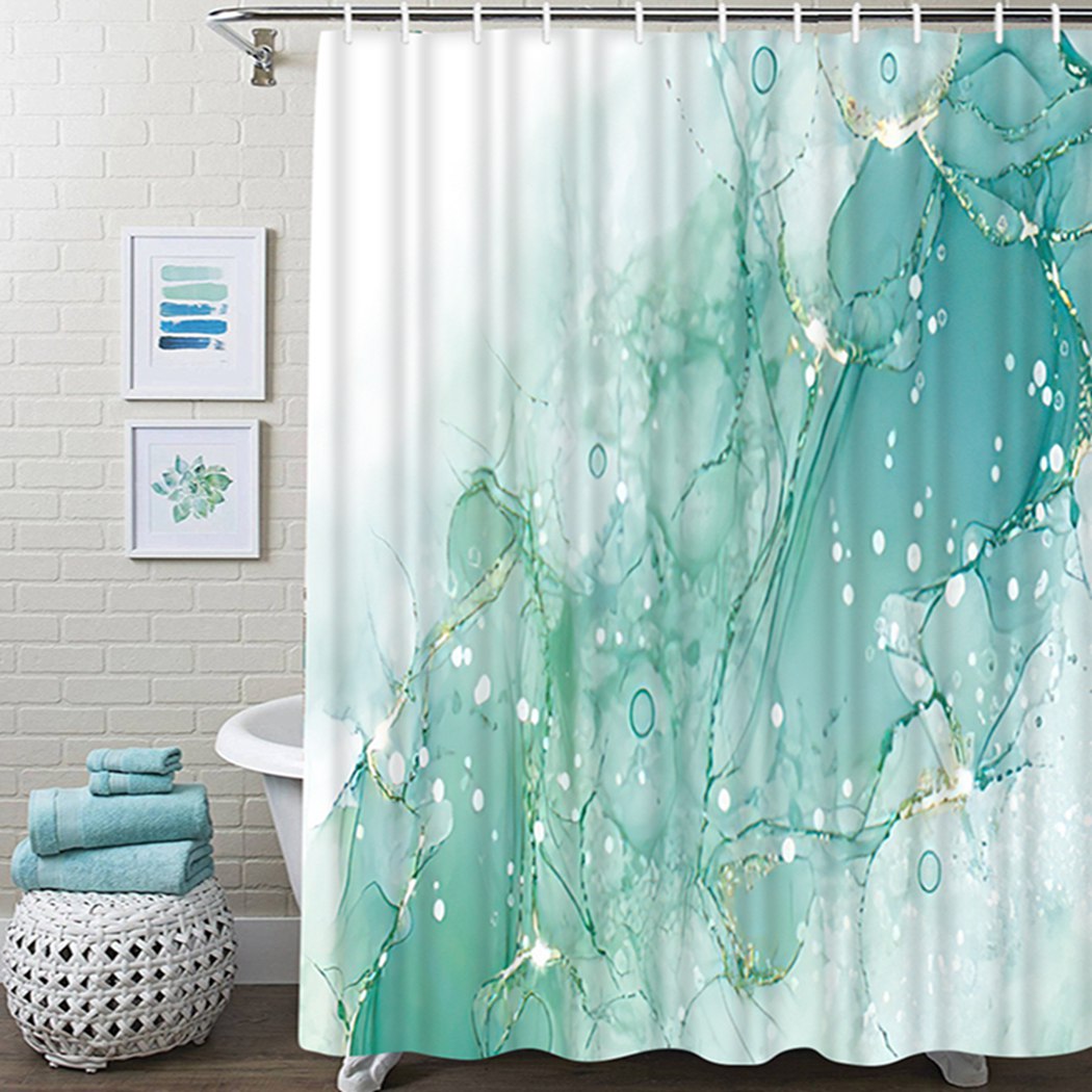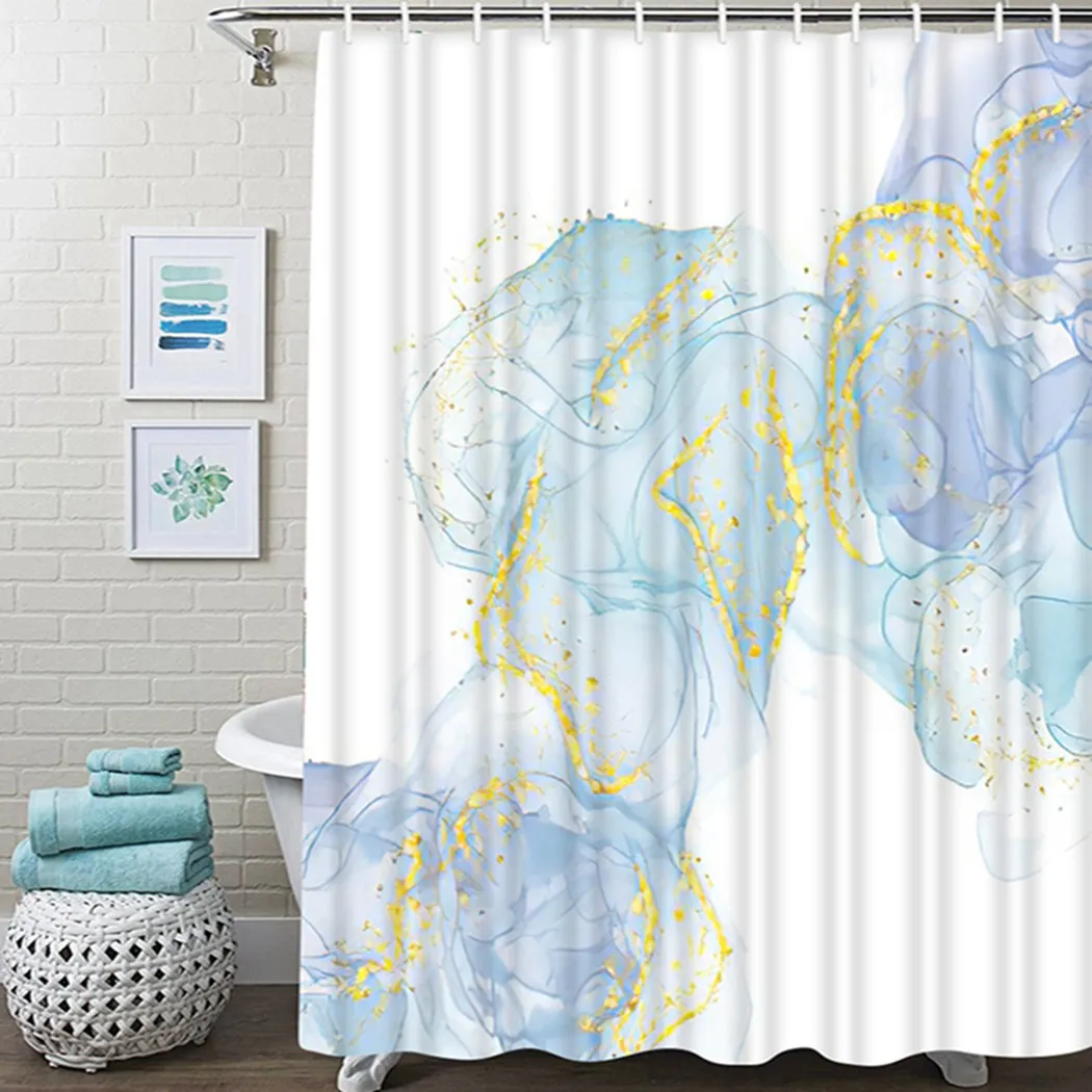 Водонепроницаемая шторка для ванной из полиэстера, с золотыми линиями и бирюзовым принтом