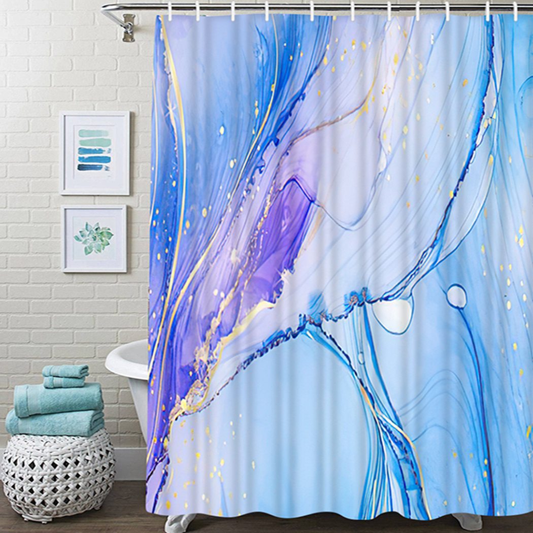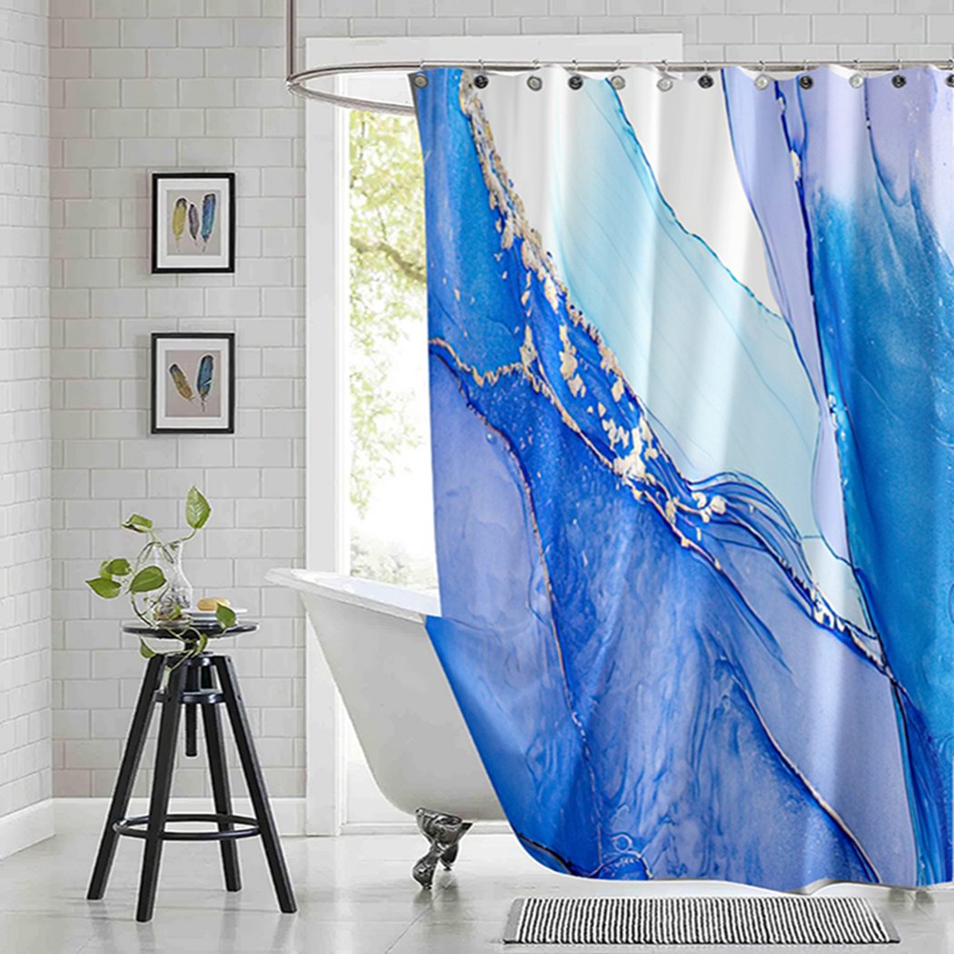 Материал: занавеска для душа изготовлена из высококачественного полиэфирного волокна, которое нелегко выцветать и деформировать, а также легкое и удобное для переноски.