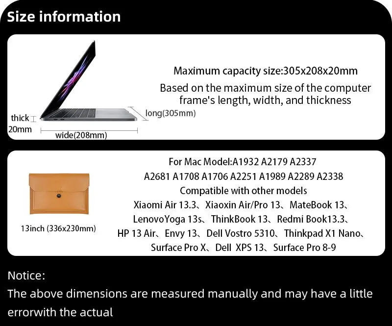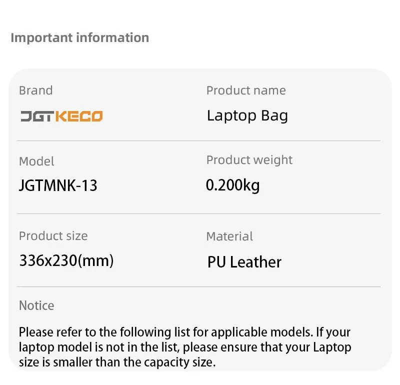 1. Размер не подходит для всех 13,3-или 13,6-дюймовых ноутбуков, только для некоторых легких ноутбуков. Пожалуйста, обратитесь к списку ниже, чтобы купить!