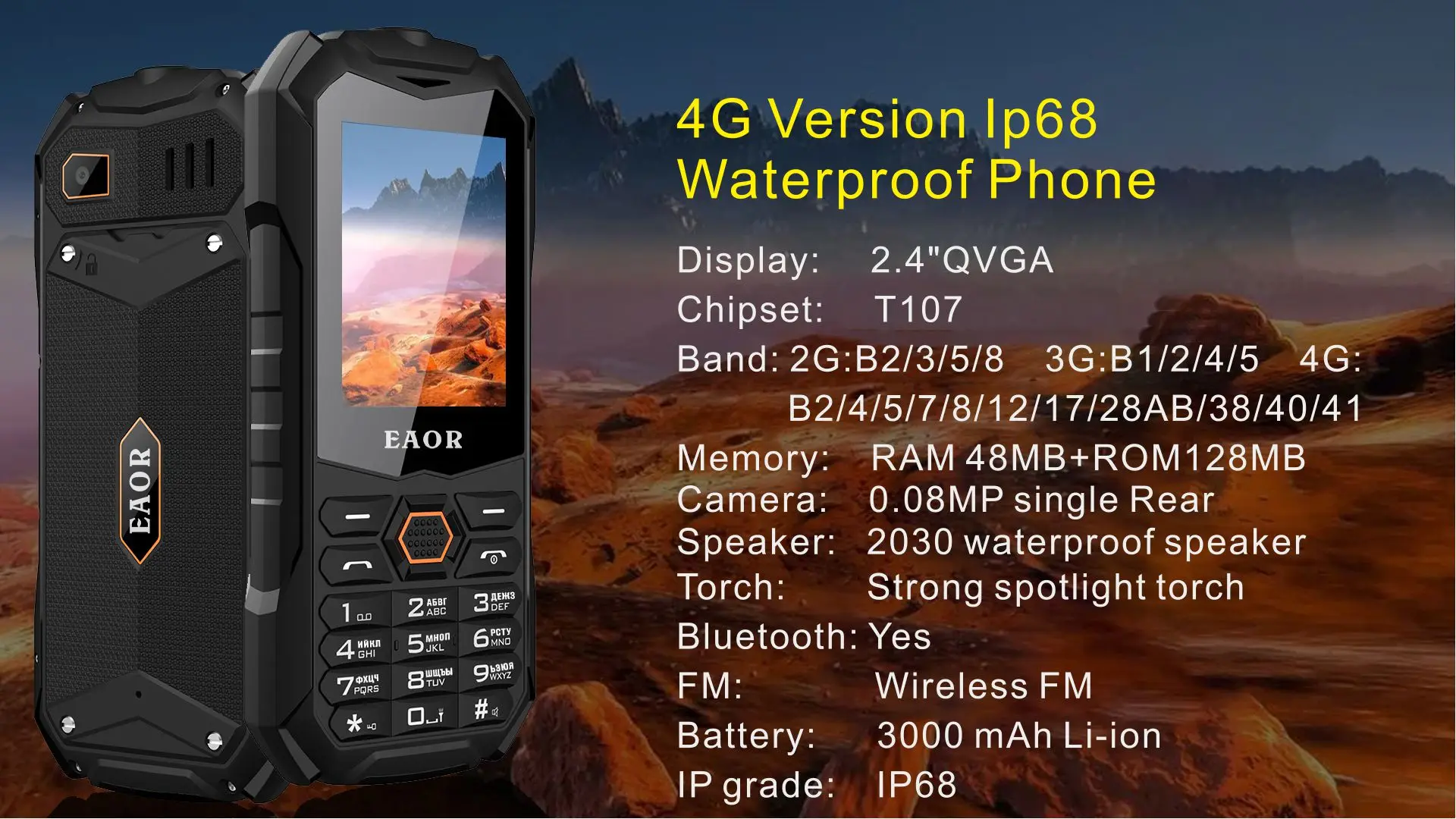 Особенность: класс IP68, фонарик, Bluetooth, FM, вибратор, MP3, MP4, TF-карта, приемник и т. Д.