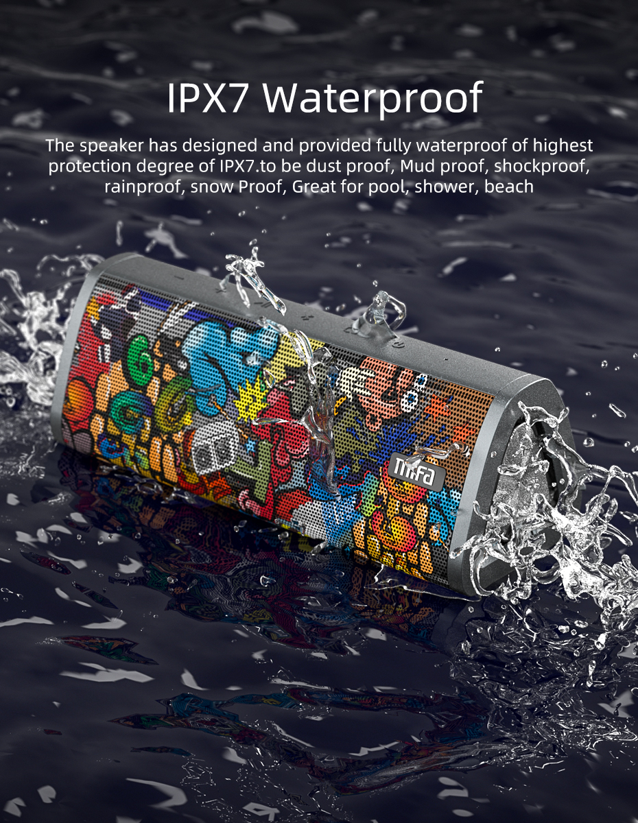 Динамик разработала и полностью водонепроницаемый высокого степень защиты IPX7.to быть защита от пыли, грязи, защита от влаги противоударный, защита от дождя, защита от снега, отлично подходит для бассейна, душ, пляж,