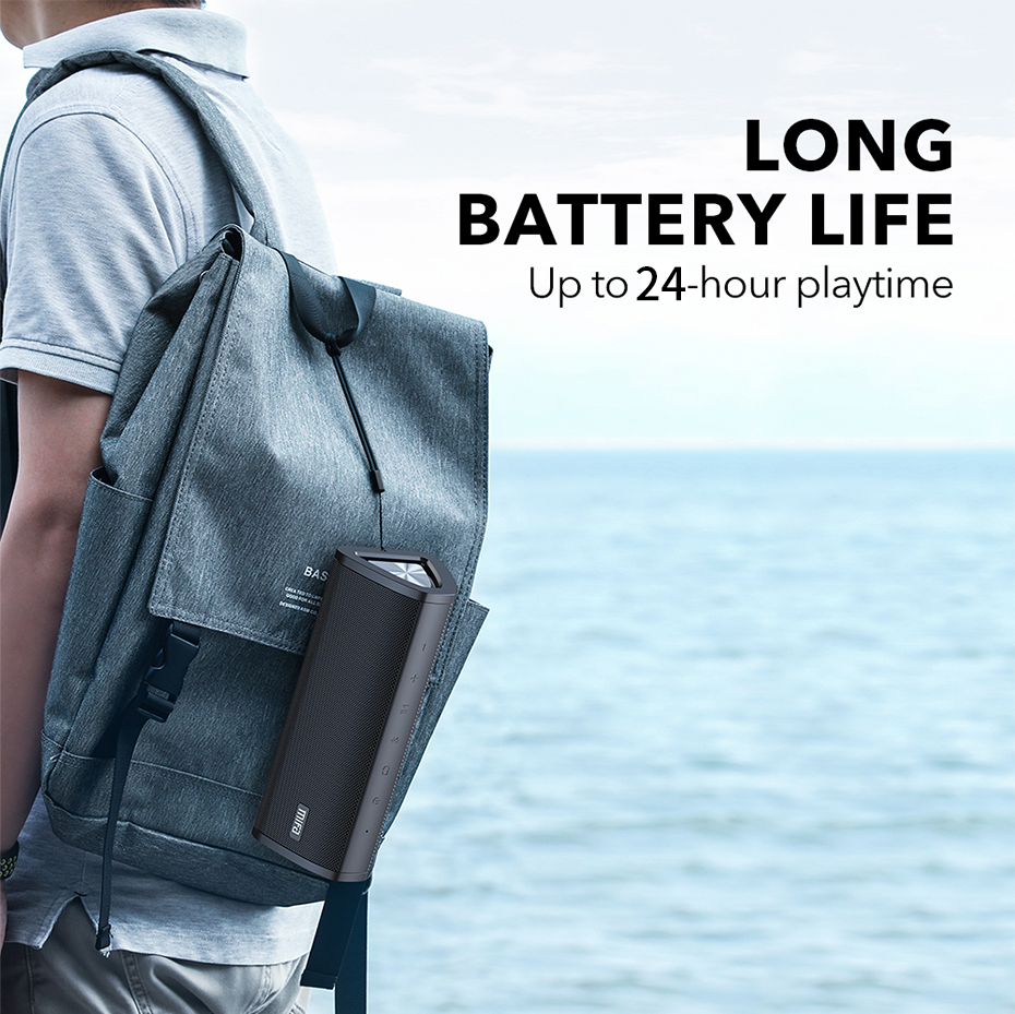 С помощью технологии DSP, двойной передовые сабвуферы и алюминий пассивные излучатели на каждом концы boost глубокий и точным басом, верны своему музыки. Без преувеличения и низким уровнем искажений. Четкие средние и высокие частоты от наших двух прецизионных акустических драйверов обеспечивают отличный стереозвук и усиленных басов от наших собственных пассивный басовый радиатор дизайн