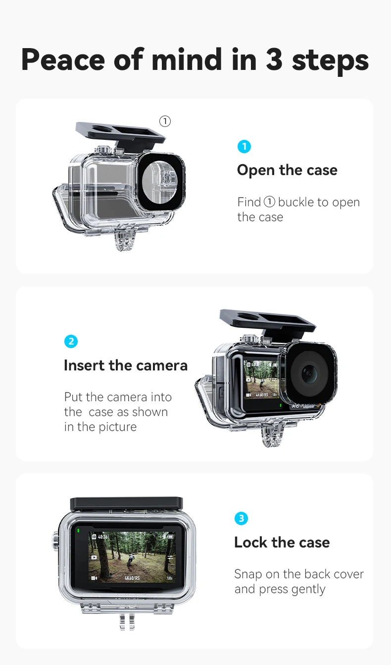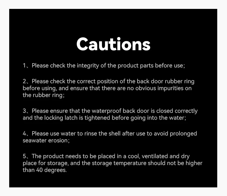 3. Пожалуйста, убедитесь, что Водонепроницаемая задняя дверь закрыта правильно, а запорная защелка затягивается перед входом в воду;