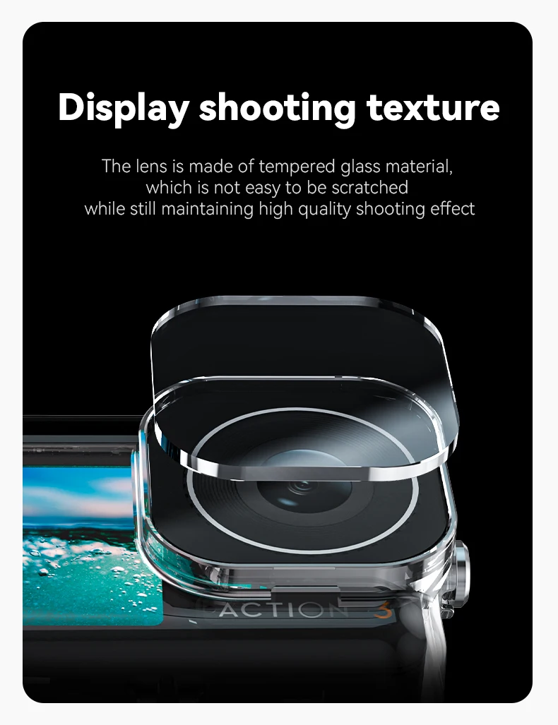 4. Текстура дисплея. Объектив изготовлен из закаленного стекла, который нелегко поцарапать, сохраняя при этом высококачественный эффект съемки.