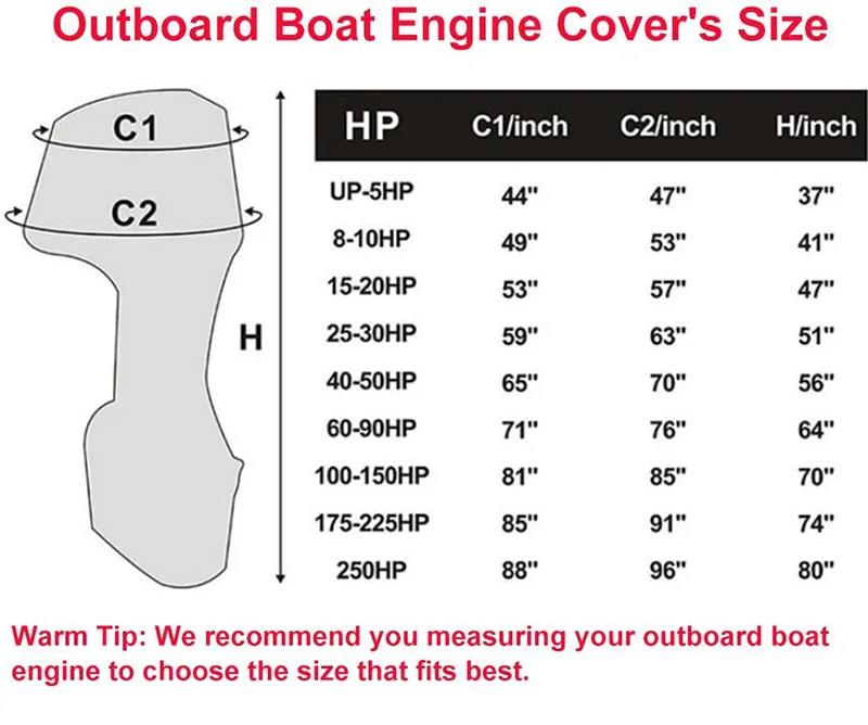 Совершенно новый и высококачественный Название: 600D Устойчивая к выцветанию и трещинам Полная крышка подвесного двигателя Материал: ткань Оксфорд 600D Цвет: черныйВодонепроницаемость: Да Дополнительно: 6-15HP, 15-20HP, 20-30HP, 30-60HP, 60-100HP, 100-150HP, 175-225HP Размер: 6 ~ 15HP: Окружность 140 * Высота 110 см15 ~ 20HP: Окружность 150 * Высота 125 см20 ~ 30HP: Окружность 165 * Высота 137 см30 ~ 60HP: окружность 180 * Высота 144 см 60 ~ 100HP: Окружность 200 * Высота 170 см 100 ~ 150 л.с.: Окружность 226 * Высота 190 см 175 ~ 225 л.с.: Окружность 248 * Высота 197 см Упаковка: 1 x полная крышка подвесного мотора Примечание: 1. из-за эффекта света и мониторов, цвета могут немного отличаться. 2. возможны незначительные погрешности в размере из-за ручного измерения. Спасибо за понимание! 3,1 см = 0,39 дюйма.