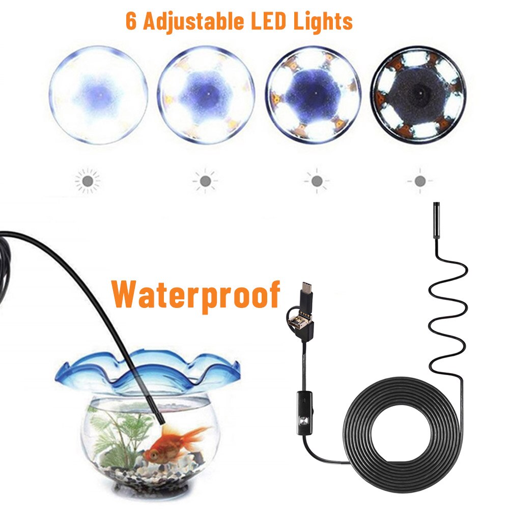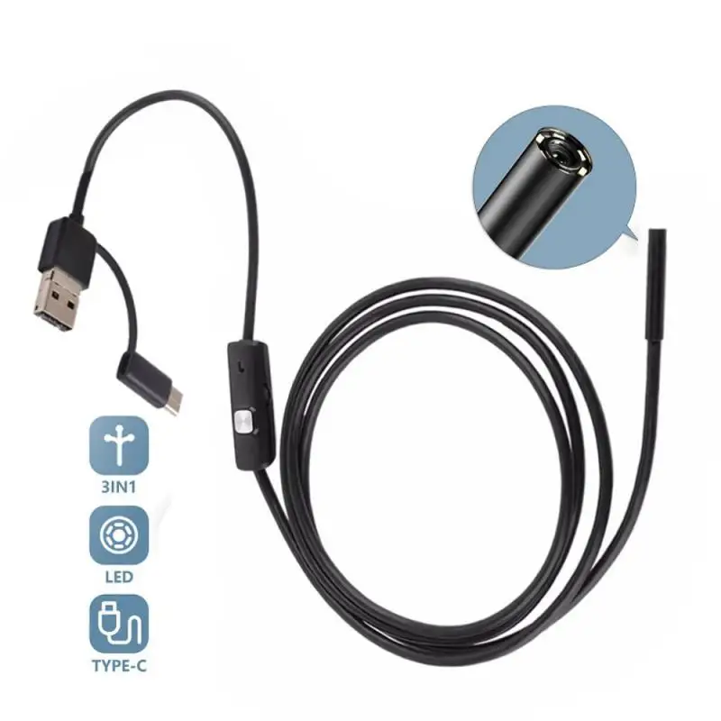 Водонепроницаемый проволочный бороскоп Гибкий проволочный мини-эндоскоп Usb Встроенный 6 светодиодных фонарей Черная Инспекционная камера Эндоскоп 3 в 1