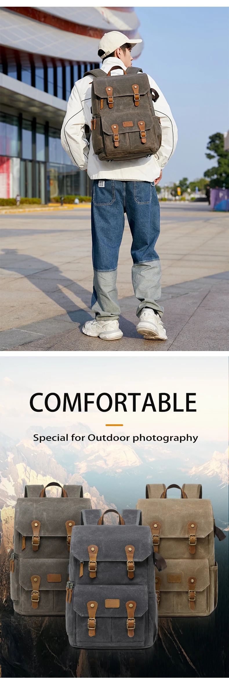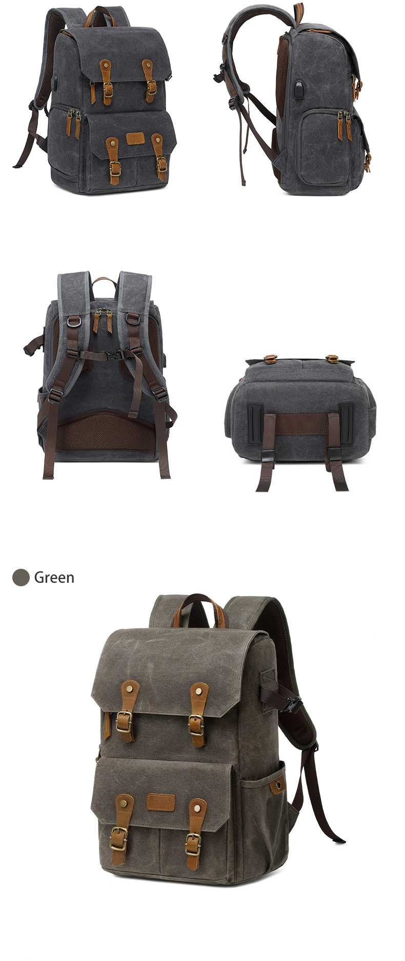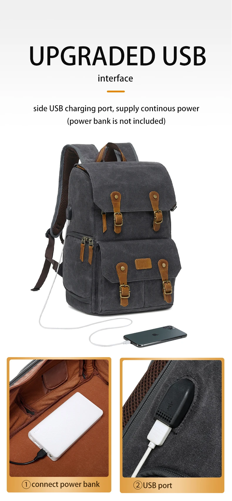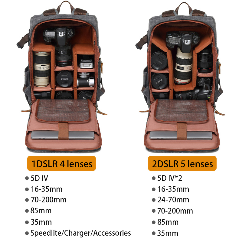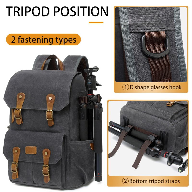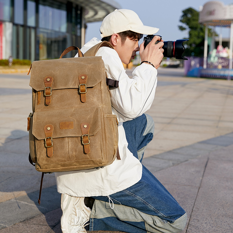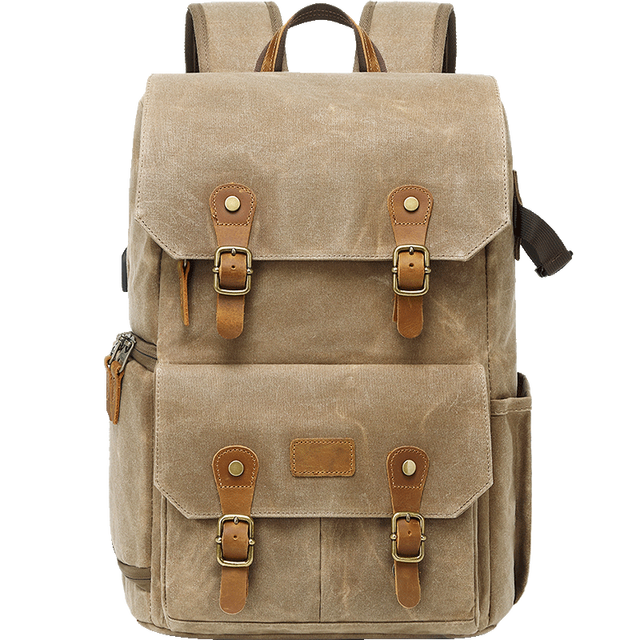 Водонепроницаемый холщовый рюкзак для фотоаппарата в стиле ретро с USB-портом для ноутбука 15,6 дюйма